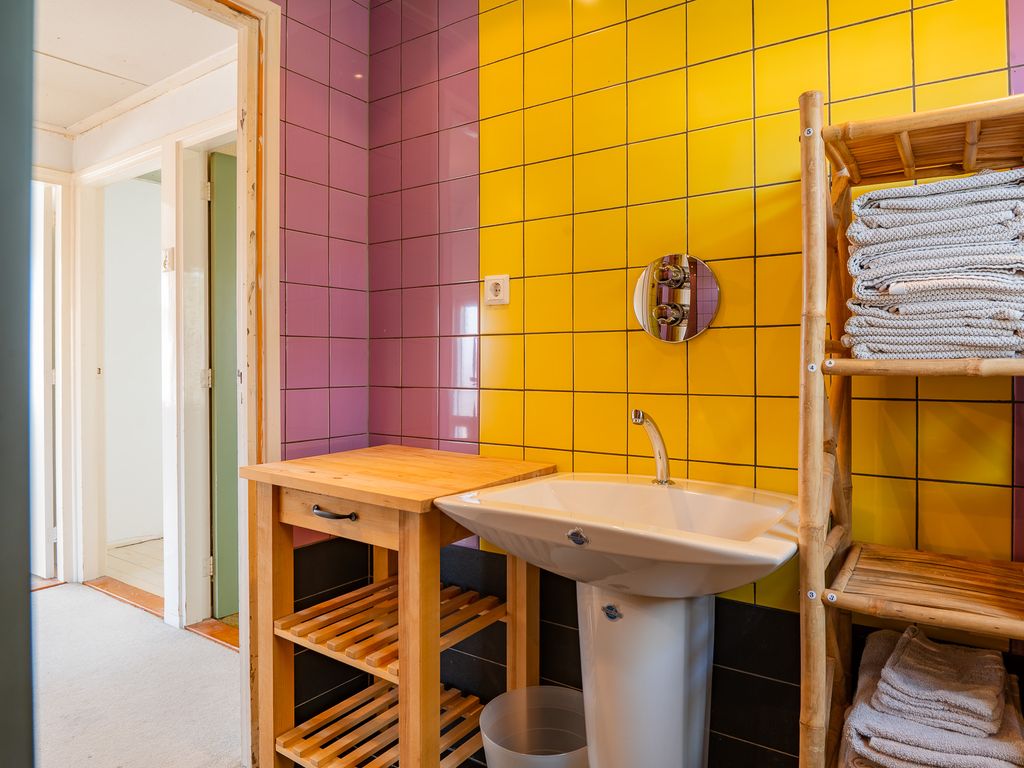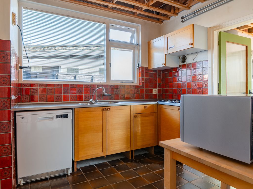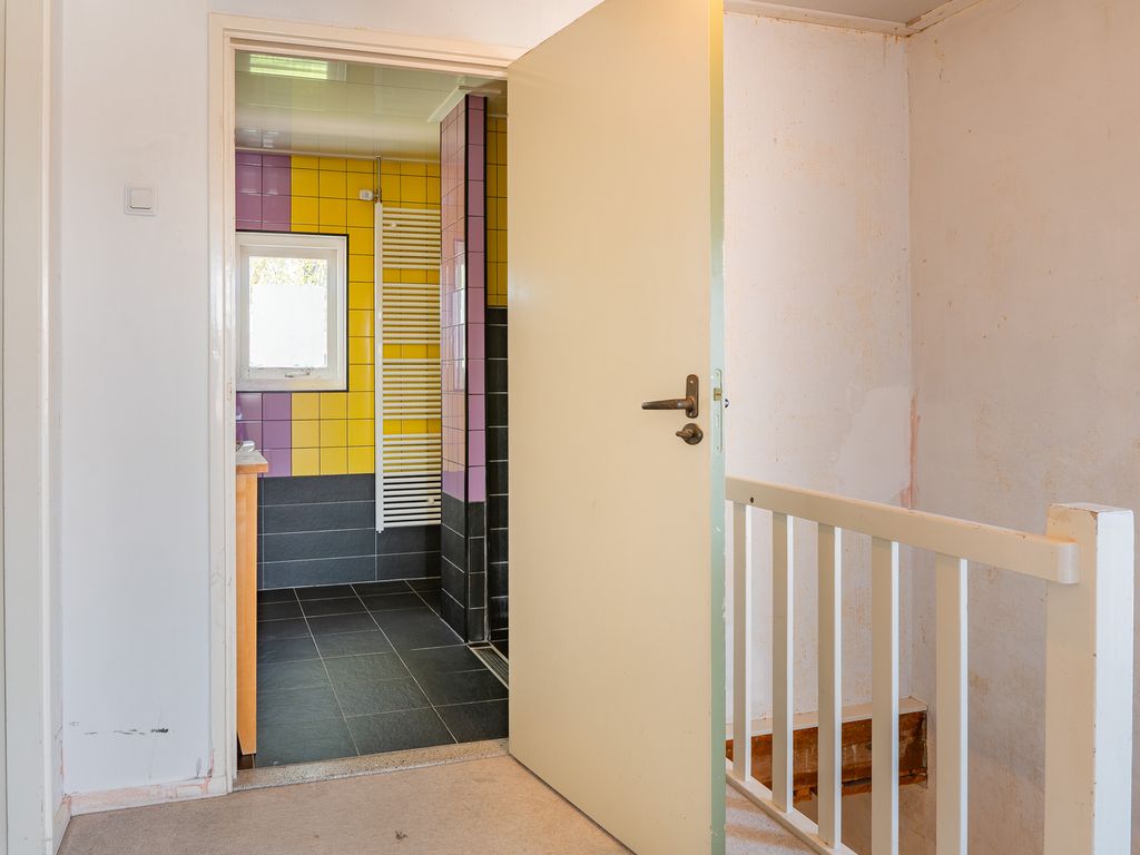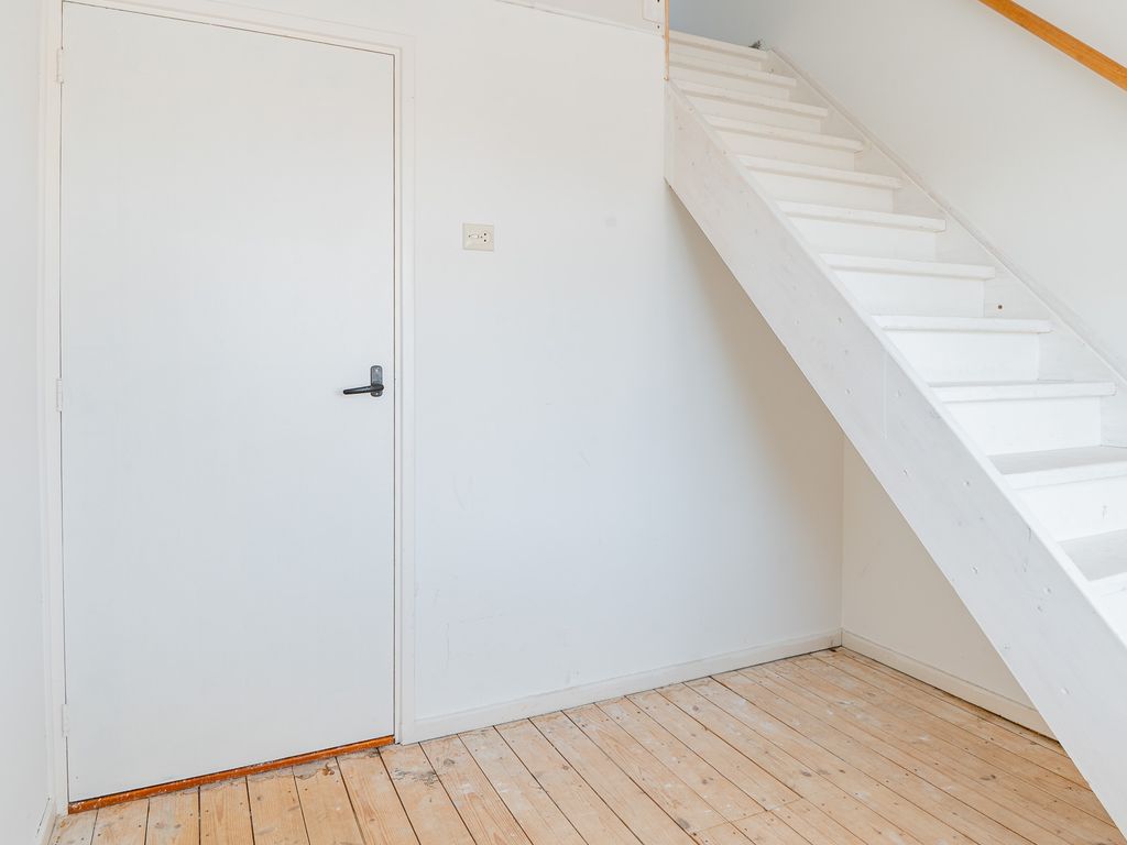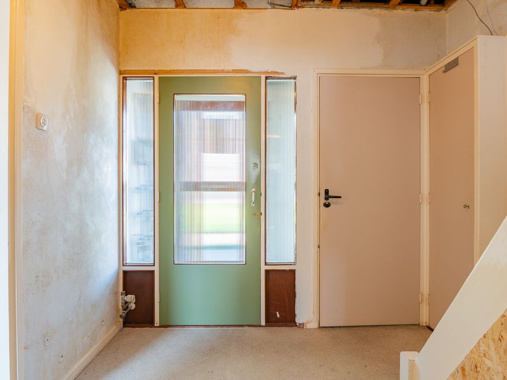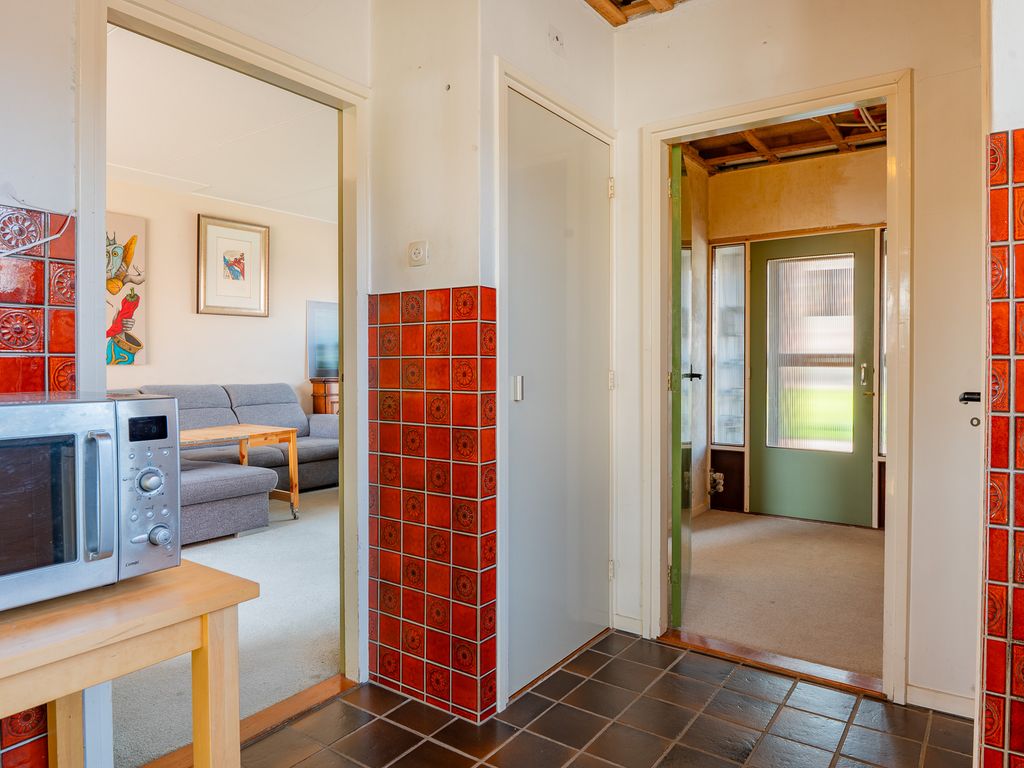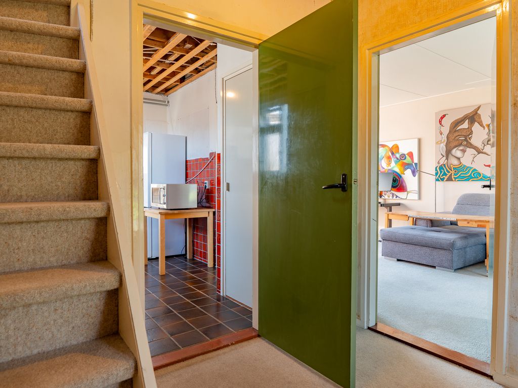 Via de kleine voortuin kom je binnen in de woning. De entree bestaat uit een karakteristieke jaren ’60 tussenhal en biedt toegang tot de meterkast (8 groepen), het toilet, de trapopgang, de woonkamer en de keuken. De woonkamer is heerlijk licht dankzij grote ramen aan zowel de voor- als achterzijde. De aparte keuken is functioneel en voorzien van een ruime trapkast en vaste kast. Met een kleine ingreep is hier eenvoudig een open keuken van te maken. Vanuit de keuken is er toegang tot de praktische bijkeuken, waar zich de CV-installatie en witgoedaansluitingen bevinden. Ook is hier ruimte om fietsen of andere spullen op te bergen.