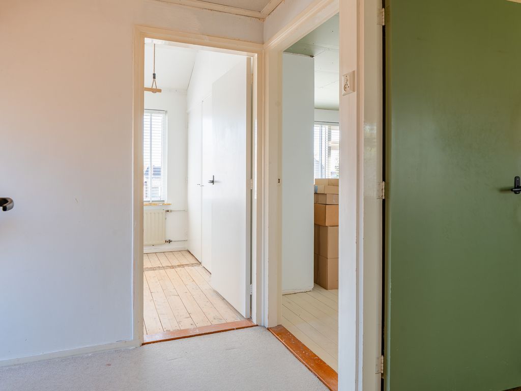 De overloop geeft toegang tot drie slaapkamers en de badkamer. De slaapkamer aan de voorzijde meet 3,81x3,26 m en de slaapkamer aan de achterzijde 3,81x3,63m. De derde slaapkamer meet 2,69x2,59m is voorzien van vaste kasten en vaste trap naar zolder, daardoor is deze kamer is vooral geschikt als thuiswerkplek of hobbyruimte. De badkamer is modern ingericht met een inloopdouche, tweede toilet, wastafelmeubel en designradiator.