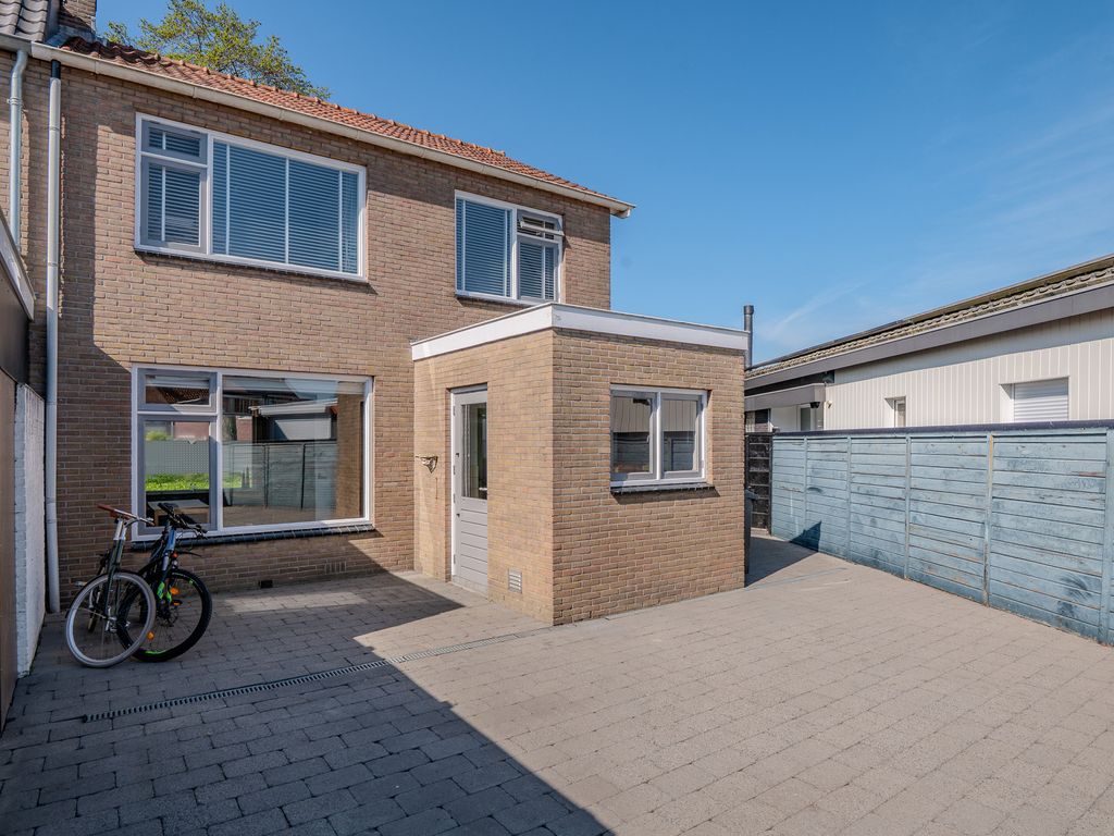 De diepe achtertuin is momenteel volledig bestraat, maar biedt volop mogelijkheden om naar eigen wens in te richten – denk aan een overkapping, tuinhuis of zelfs een uitbouw. De zijruimte van het perceel biedt een unieke extra: hier is voldoende plek om één of twee auto's op eigen terrein te parkeren.