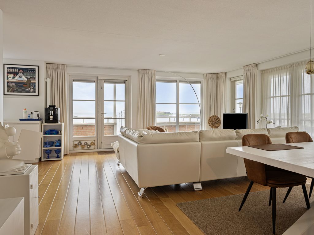 Door de open ligging aan de buitenzijde van het appartementencomplex kunt u, elke dag weer, onbelemmerd genieten van de continu veranderende luchten en de levendige jachthaven. Het zal u nooit vervelen en er is altijd wat te zien. Tot het appartement, met een woonoppervlak van circa 96 m², behoren ook een eigen parkeerplaats en afsluitbare berging in het souterrain. Het appartement is met trap en lift bereikbaar.