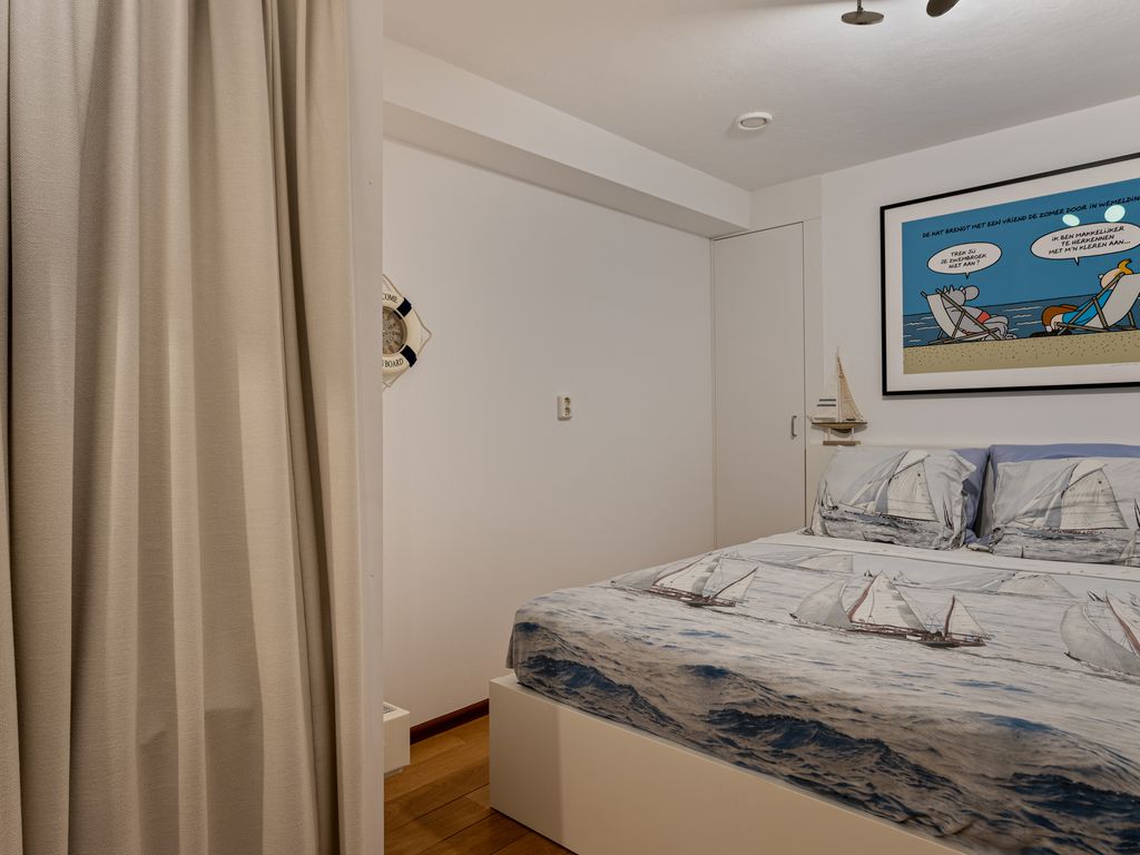 De 2e slaapkamer, die voornamelijk incidenteel wordt gebruikt, is ca. 9 m² groot en biedt ruimte aan een 2-persoons bed, een kast en wastafelmeubel. In de linkerhoek van de slaapkamer hangt de cv-ketel en zijn er aansluitpunten voor wasmachine en droger.