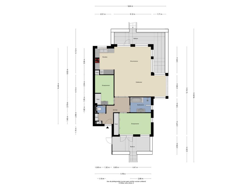 Zoals reeds eerder in de omschrijving gememoreerd heeft het appartement de beschikking over twee mooie balkons/terrassen, waarvan er één op het noorden en één op het zuiden ligt. U heeft daardoor altijd de mogelijkheid om in de zon, of in de schaduw of uit de wind te zitten. Beide terrassen, die voorzien zijn van mooie keramische vloertegels, hebben een trap naar de gemeenschappelijke tuin van het appartementencomplex en zijn omzoomd door een degelijke stenen balustrade.