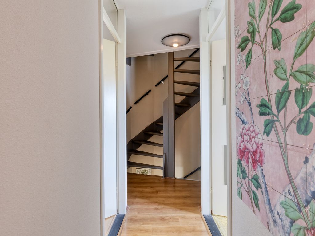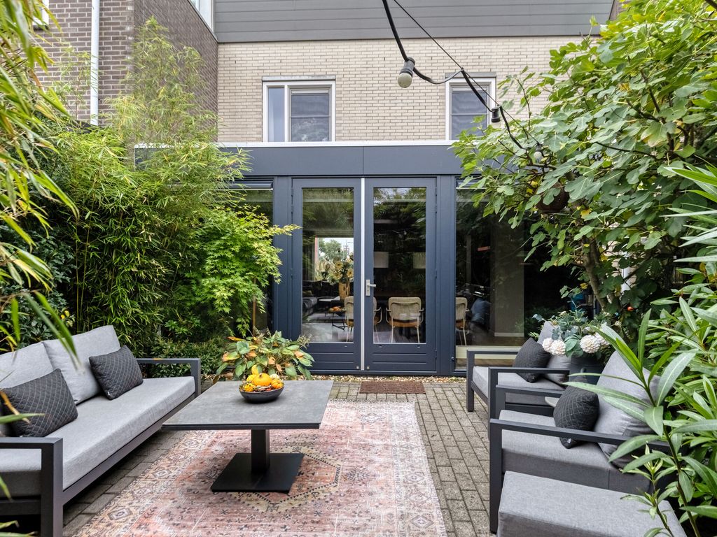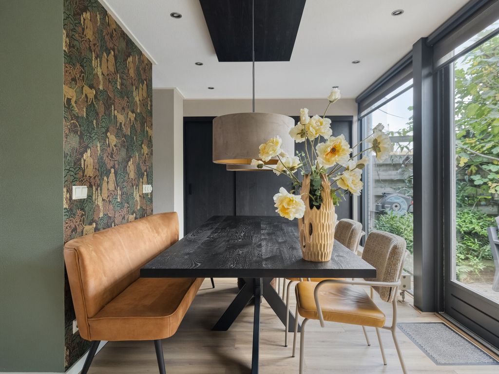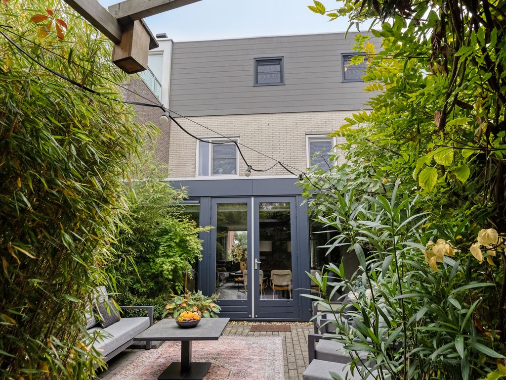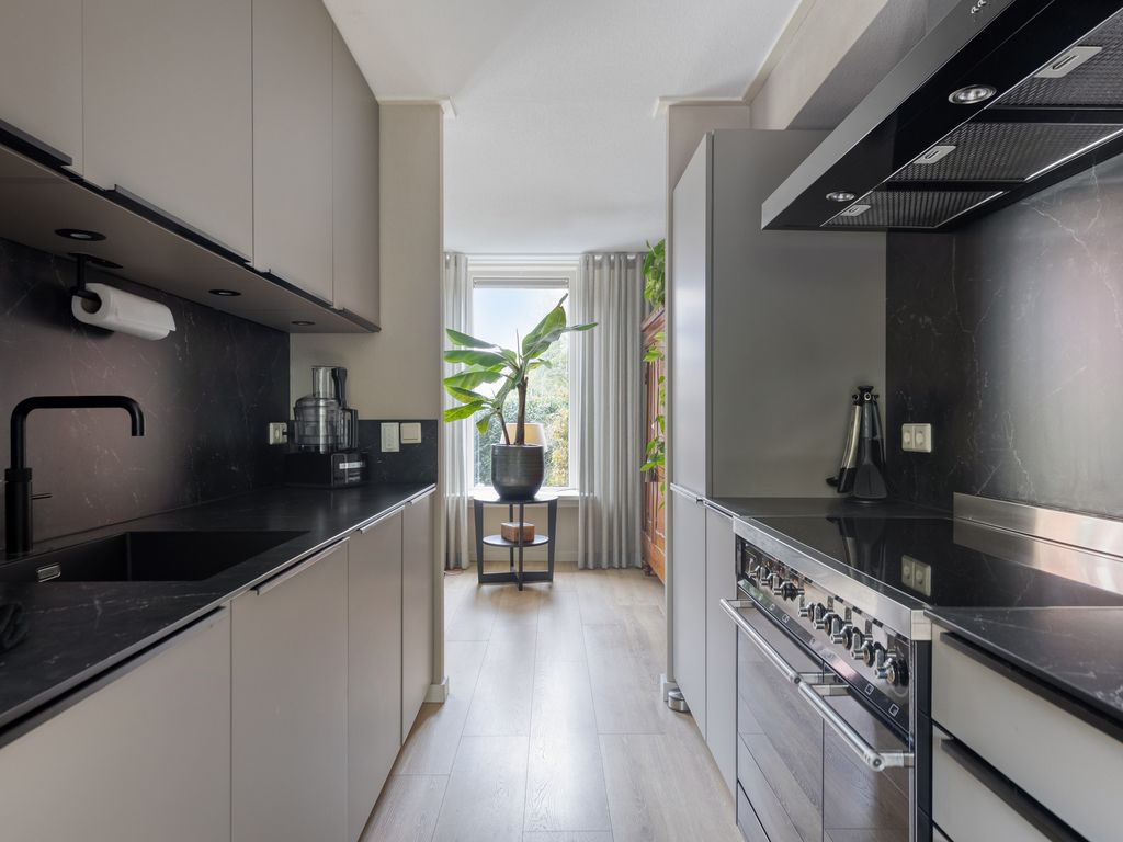 Via de verzorgde entree met beschutte voortuin betreedt u de hal met toilet, meterkast (12 groepen) met waterontharder, praktische berging, trapopgang met ruime trapkast en toegang tot de woonkamer. De woonkamer is dankzij de 3 meter diepe uitbouw aan de achterzijde verrassend ruim en licht. Grote raampartijen zorgen voor een prettige lichtinval en het geheel is stijlvol en doordacht afgewerkt. In de uitbouw bevindt zich de eetkamer, voorzien van een fraaie, op maat gemaakte inbouwkast. Via de dubbele tuindeuren loopt u zo de tuin in. Centraal in de woning ligt de moderne keuken, die in open verbinding staat met de woonkamer en eetkamer, maar toch een eigen plek behoudt. De keuken is uitgerust met diverse inbouwapparatuur, waaronder een Smeg-inductiefornuis met dubbele oven, afzuigkap, koelkast, vriezer, vaatwasser en Quooker. Ondanks het compacte formaat is er verrassend veel werkruimte.
