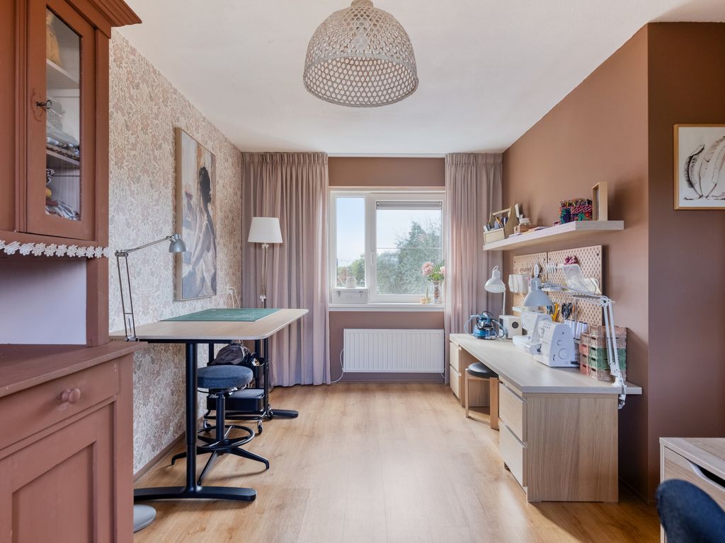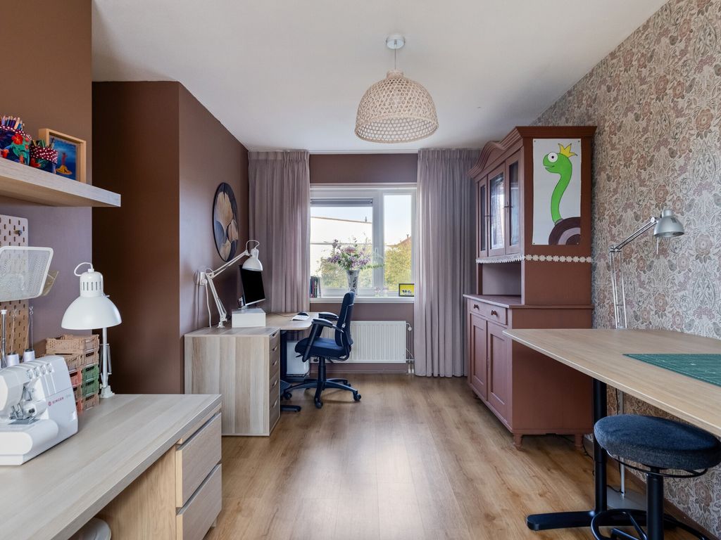 De tweede verdieping is bereikbaar via een vaste trap en is enkele jaren geleden voorzien van een ruime dakopbouw. Hierdoor is een royale overloop ontstaan met veel bergruimte en toegang tot twee kamers. De slaapkamer is sfeervol uitgevoerd en beschikt over een inbouwkast waarin de CV-ketel (Nefit, 2014) is weggewerkt. De tweede slaapkamer is momenteel ingericht als werk-/hobbyruimte en voorzien van een grote glazen schuifpui met toegang tot het dakterras. Deze verdieping beschikt bovendien over airconditioning. Het dak is vijf jaar geleden vernieuwd en voorzien van 10 zonnepanelen, wat bijdraagt aan het energiezuinige karakter van de woning.
