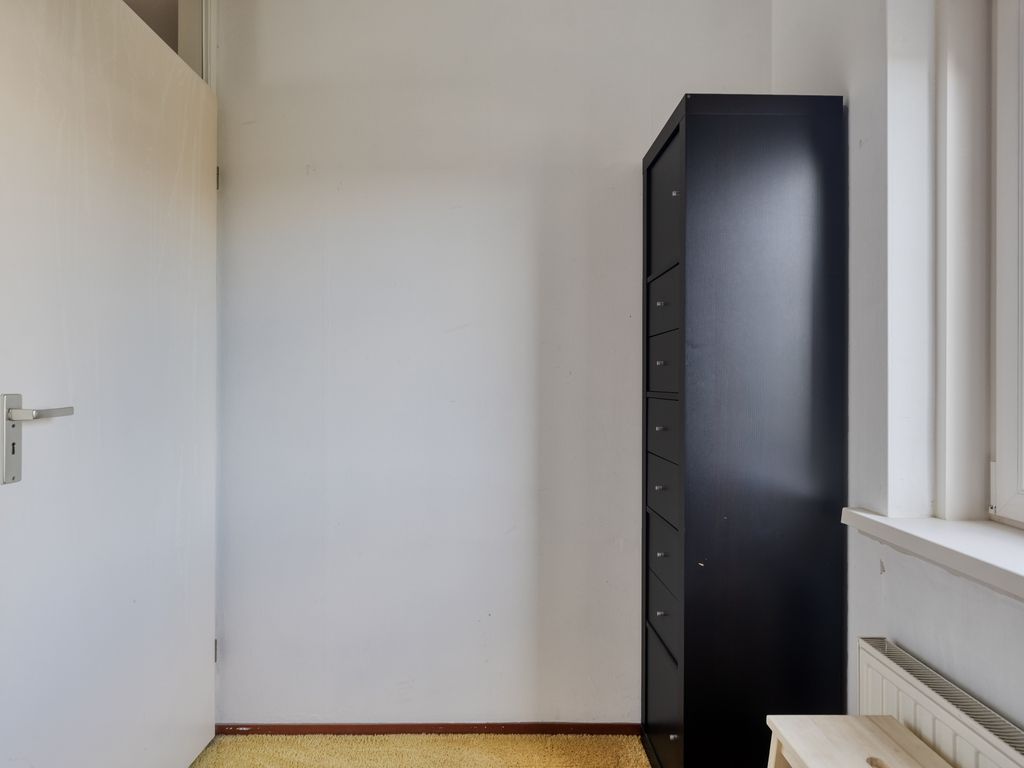 Op de eerste verdieping bevinden zich drie volwaardige slaapkamers en de badkamer. De overloop biedt extra opbergruimte en is voorzien van aansluitingen voor wasapparatuur. De kamers zijn momenteel in gebruik als werk- en inloopruimtes, maar kunnen eenvoudig weer als slaapkamers worden ingericht. Alle kamers beschikken over kunststof draai-kiepramen met horren. De badkamer is recent gemoderniseerd en uitgerust met een douche, toilet, wastafel en designradiator.