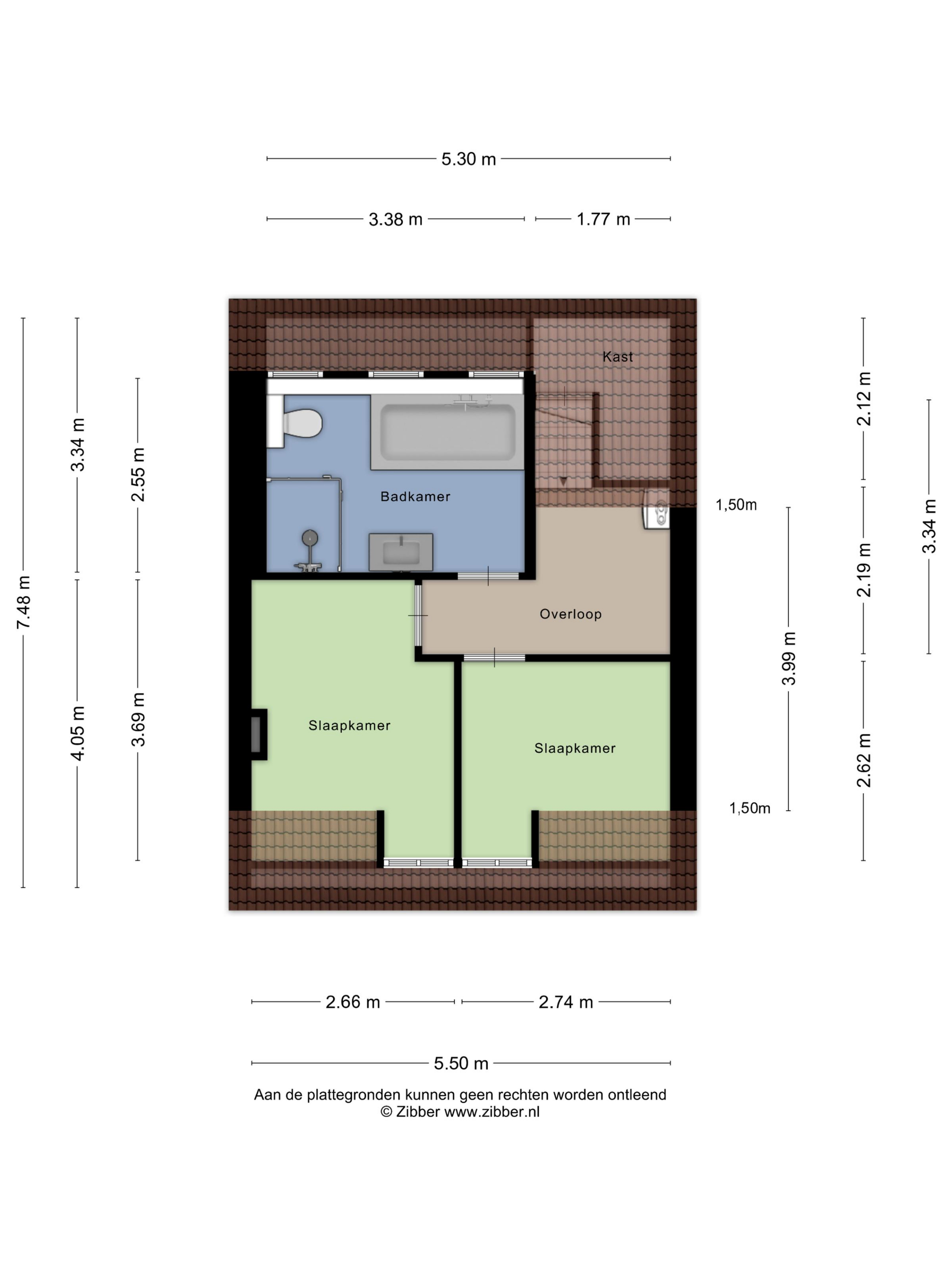 De overloop geeft toegang tot twee slaapkamers en de badkamer. Op de overloop bevind zich ook de CV-ketel (Nefit, 2022). Dankzij de kunststof dakkapellen aan zowel de voor- als achterzijde zijn beide slaapkamers en de badkamer vergroot en efficiënt ingedeeld. De badkamer is opvallend ruim en uitgerust met een ligbad, douche, tweede toilet, wastafelmeubel, radiator en vloerverwarming. De slaapkamers zijn beide ook ruim en bevinden zich aan de voorkant van de woning.