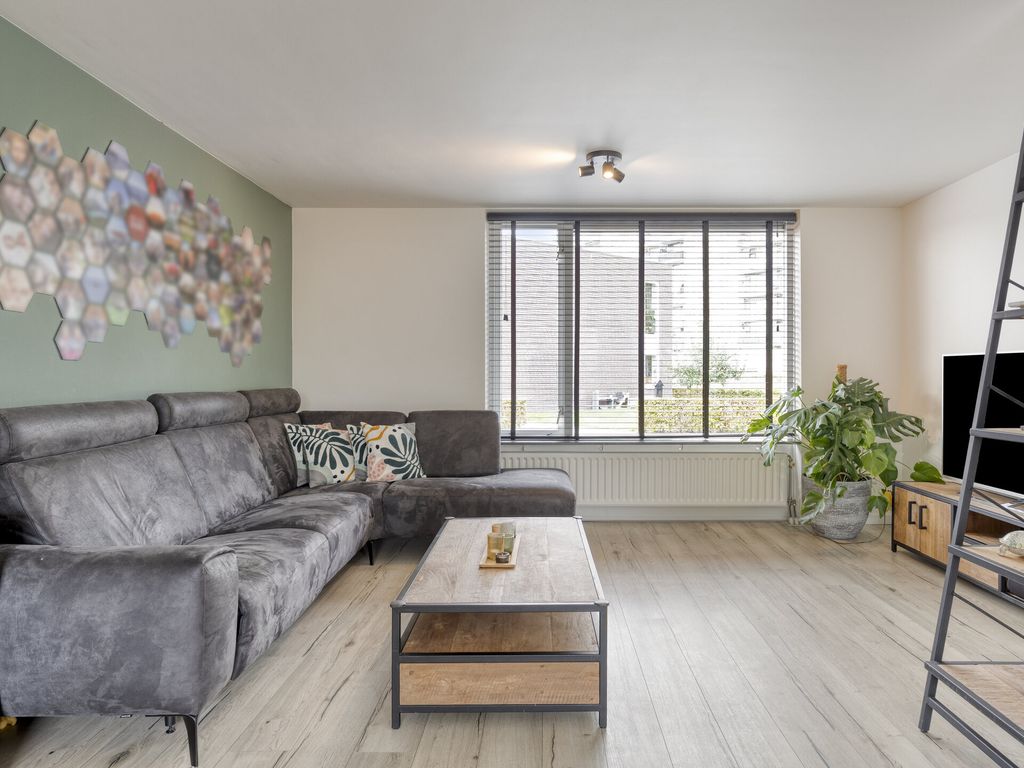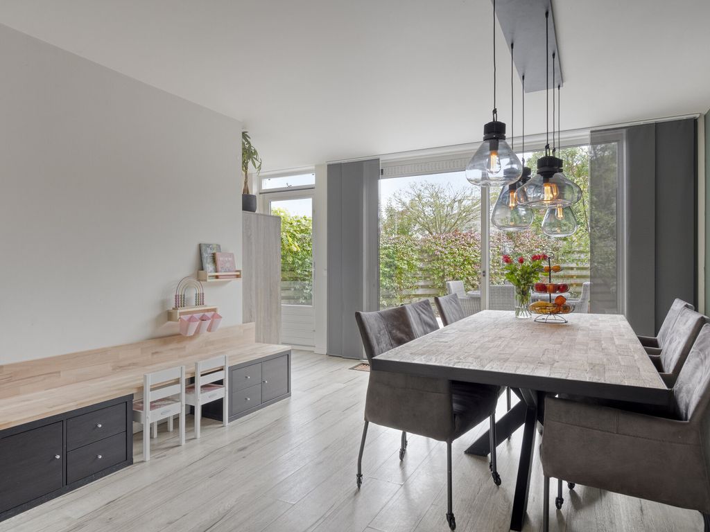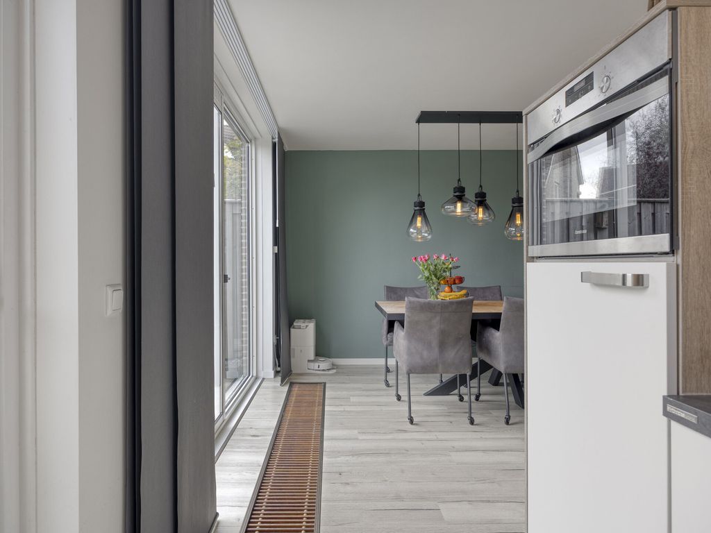 Parkeer op eigen terrein en betreed de woning via de voordeur of de deur naar de inpandige berging. In de hal vind u het toilet (met extra bergruimte), de meterkast (7 groepen) en de trapopgang. De royale woonkamer is heerlijk licht door de grote raampartijen en biedt volop ruimte voor een comfortabele zithoek en eethoek. Deze ruimte is voorzien van airco en een grote schuifpui naar de tuin. Het zonnescherm aan de achterzijde zorgt voor extra comfort in de zomer. De moderne keuken (2020) is uitgevoerd in een neutrale kleurstelling en voorzien van inbouwapparatuur zoals inductiekookplaat, afzuigkap, oven, koelkast en vaatwasser. Ook vanuit de keuken stapt u zo de tuin in. De inpandige berging, die ook vanuit de hal te bereiken is, is ideaal voor fietsen, motoren en extra opslag.