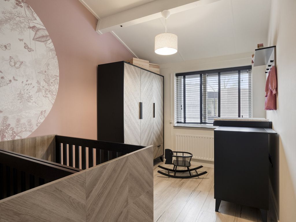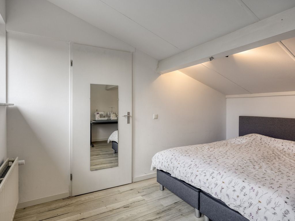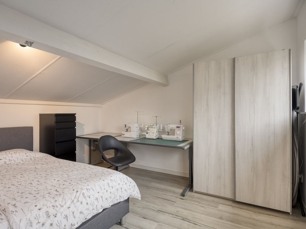 Via de vaste trap bereik je de ruime overloop met witgoedaansluitingen, CV-ketel (Remeha, 2014), ventilatie-unit (2021) en de omvormer van de zonnepanelen (2020). Daarnaast vind u hier de vierde slaapkamer, perfect als werk-, hobby- of logeerkamer. Ook deze kamer is voorzien van elektrische rolluiken.
