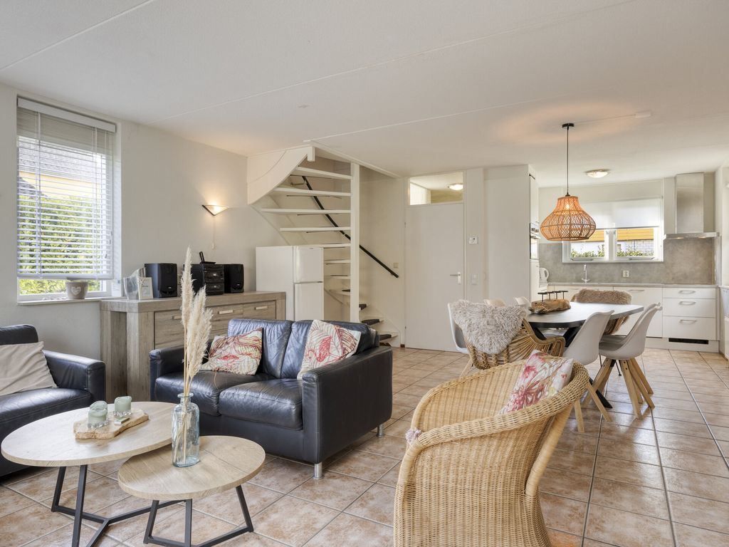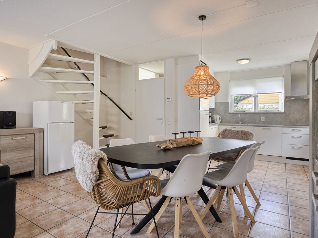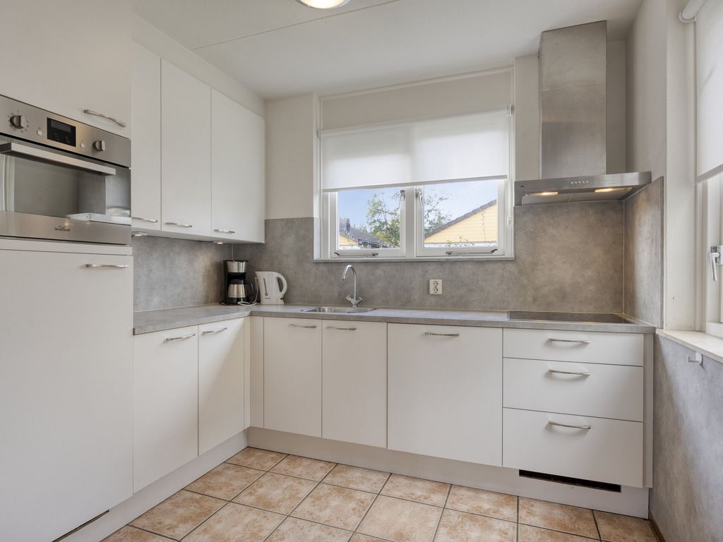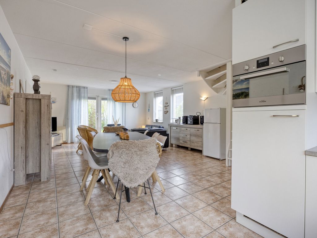 Bij binnenkomst stapt u in een lichte hal met meterkast en een separaat toilet met wastafel. Vanuit de hal loopt u door naar de royale woonkamer, het hart van de woning. Hier zorgen grote ramen en openslaande deuren voor een fijne lichtinval en een directe verbinding met de tuin. De open keuken is modern en compleet uitgerust met inbouwapparatuur zoals een inductiekookplaat, afzuigkap, koelkast met vriesvak, combi-oven en vaatwasser, perfect voor gezellige diners na een dag aan zee.