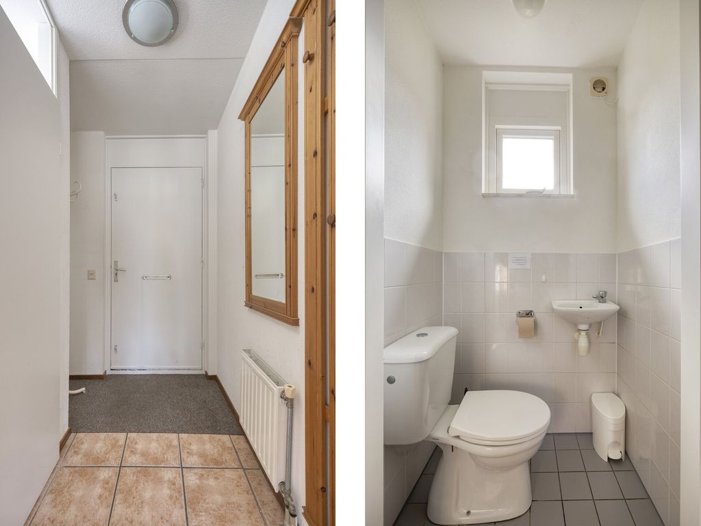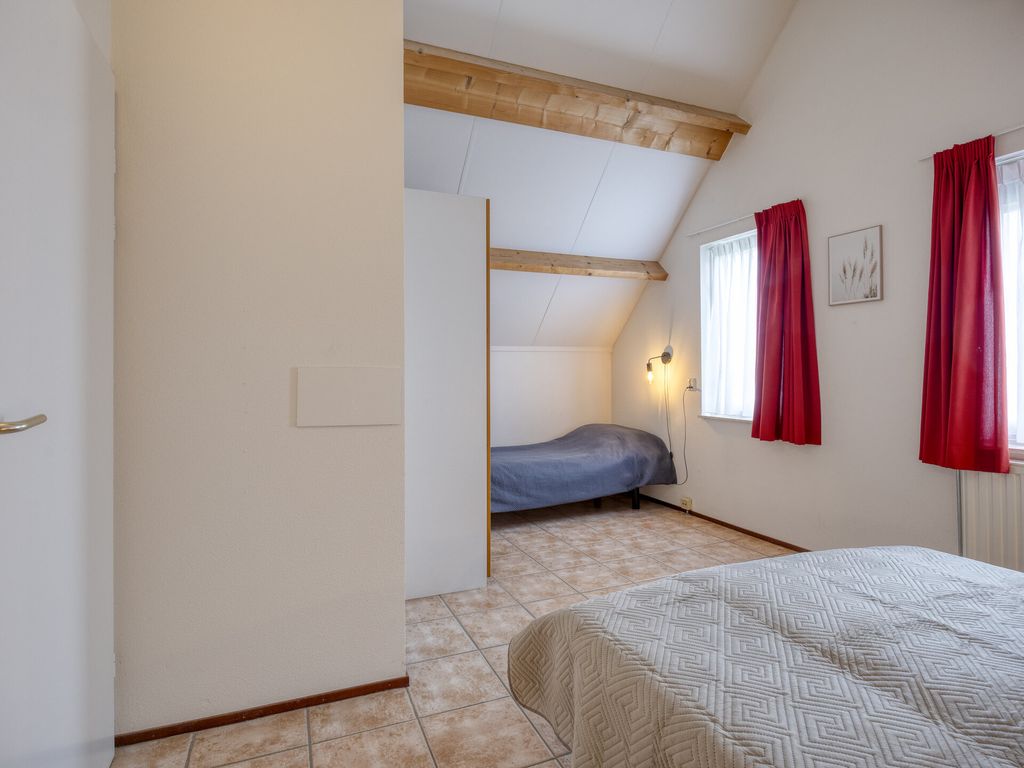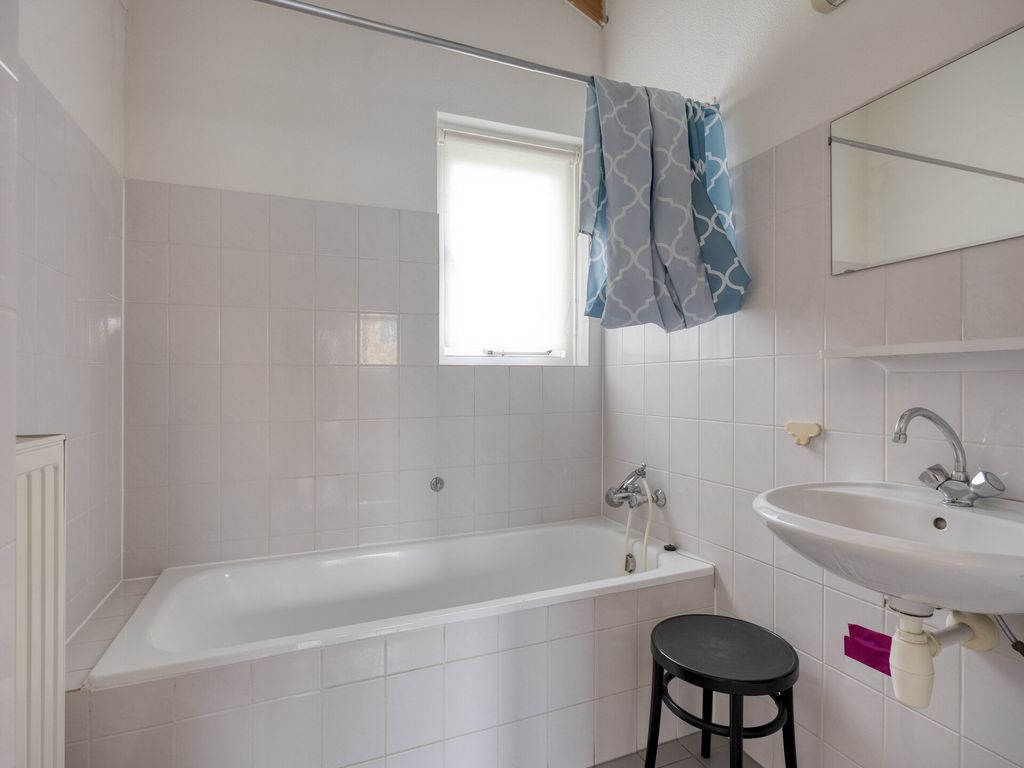 Grenzend aan de woonkamer vindt u de slaapkamer op de begane grond, voorzien van een badkamer en-suite met ligbad en wastafel. Deze indeling maakt de woning levensloopbestendig en comfortabel voor alle leeftijden.