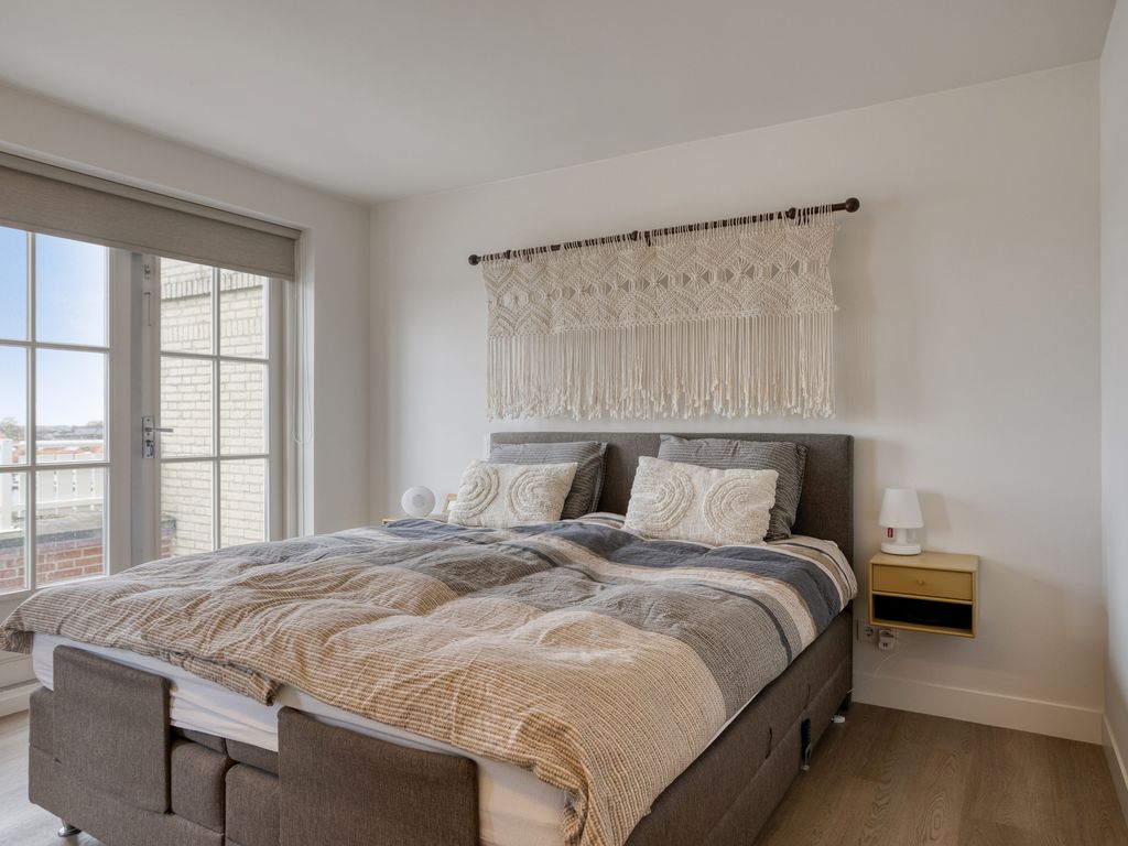 Aan de andere zijde van deze verdieping bevindt zich de tweede slaapkamer, deze is voorzien van een ruime inbouwkast en luxe wastafelmeubel met waskom en verlichte spiegel. Vanaf de overloop bereikt u via een vaste trap de derde verdieping; onder deze trap bevindt zich nog een praktische bergkast. Ook deze gehele verdieping is voorzien van nieuwe vloeren, uitgevoerd in dezelfde stijl als beneden, maar hier drempelloos in de lengterichting gelegd. Daarnaast is deze verdieping uitgevoerd met airco en elektrische verwarming.