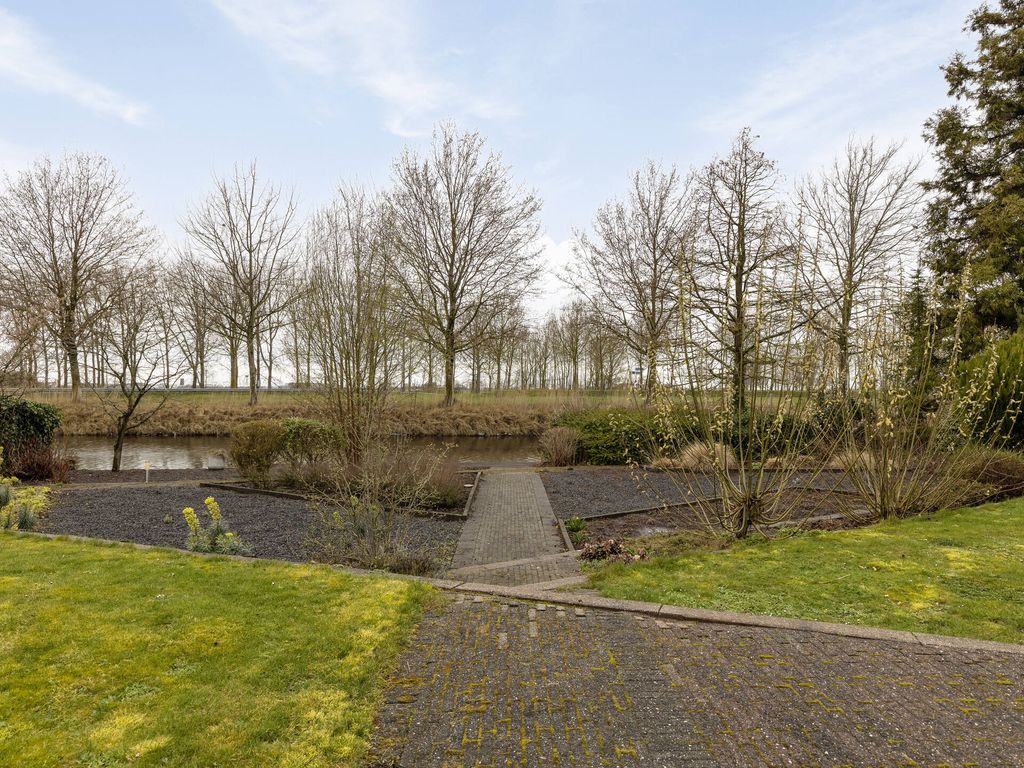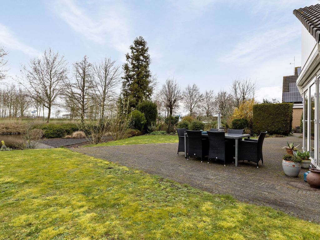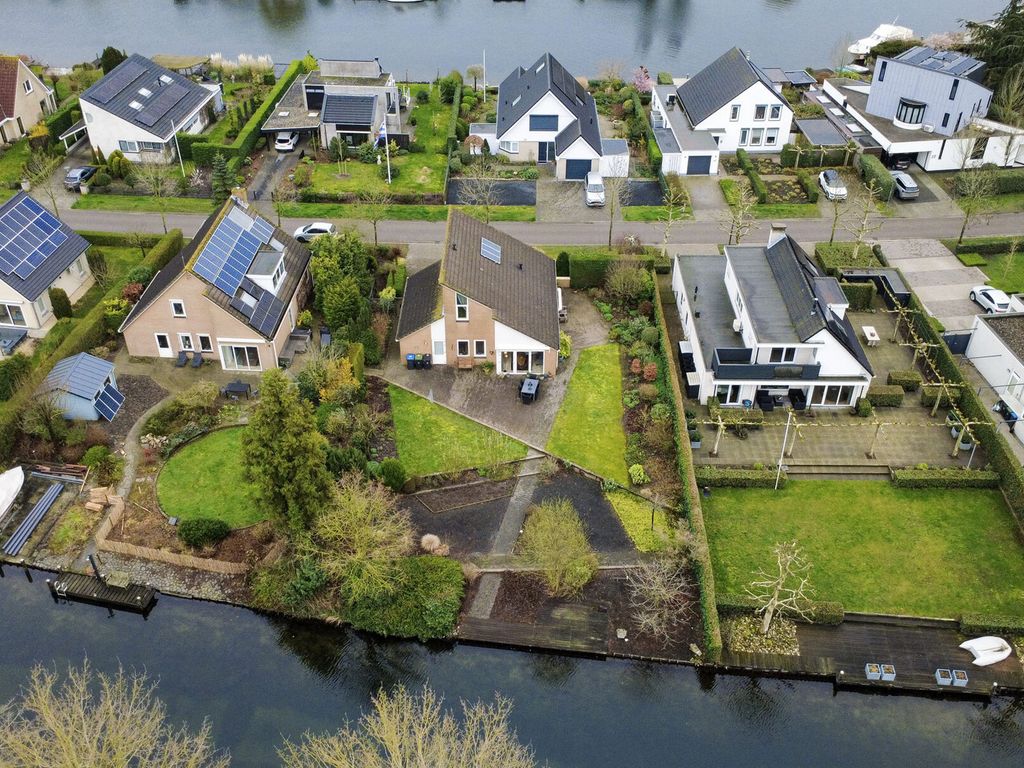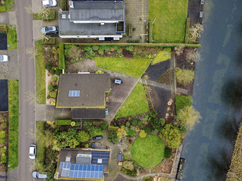 De achtertuin is fraai vormgegeven met een afwisseling van terrassen, gazon en borders op verschillende niveaus. Achterin de tuin bevindt zich een ruime houten vlonder direct aan het water. Deze plek leent zich uitstekend voor ontspanning, zwemmen of het aanleggen van een bootje. De tuin biedt volop zon en privacy en vormt een waardevolle aanvulling op de woning.