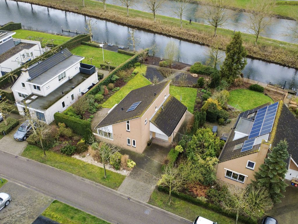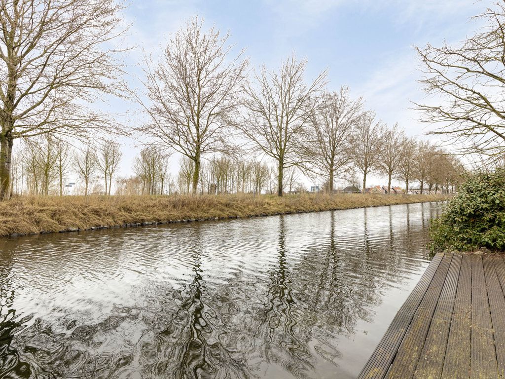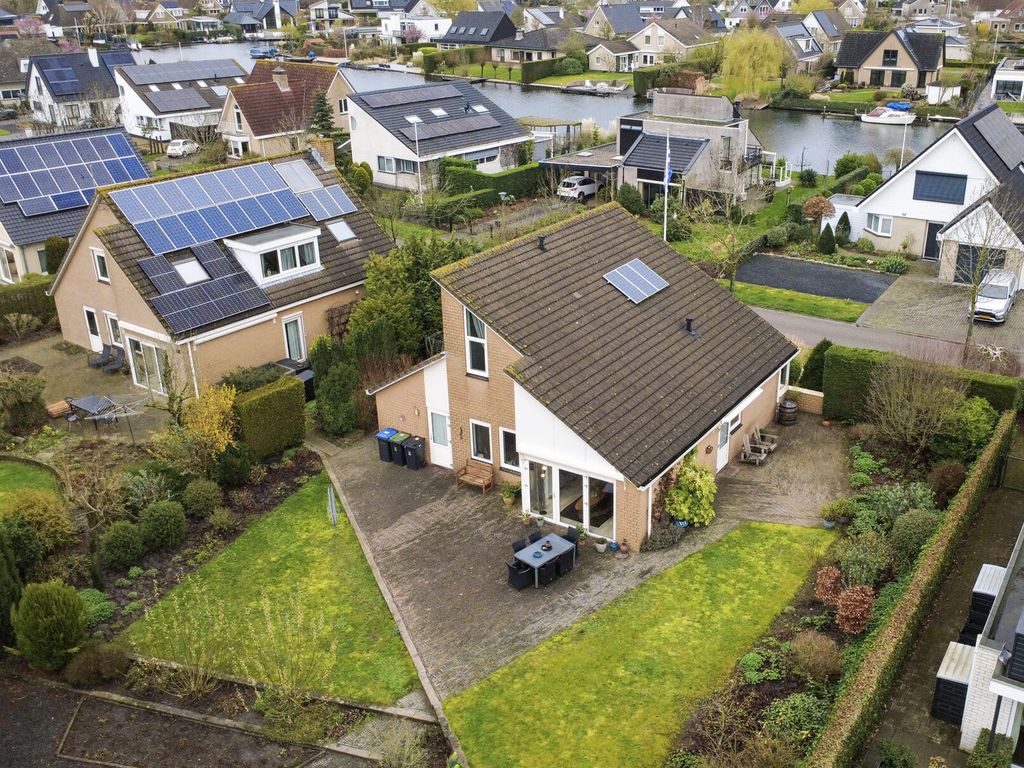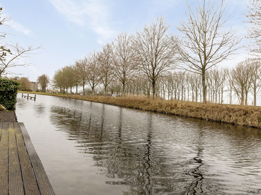 De achtertuin is fraai vormgegeven met een afwisseling van terrassen, gazon en borders op verschillende niveaus. Achterin de tuin bevindt zich een ruime houten vlonder direct aan het water. Deze plek leent zich uitstekend voor ontspanning, zwemmen of het aanleggen van een bootje. De tuin biedt volop zon en privacy en vormt een waardevolle aanvulling op de woning.