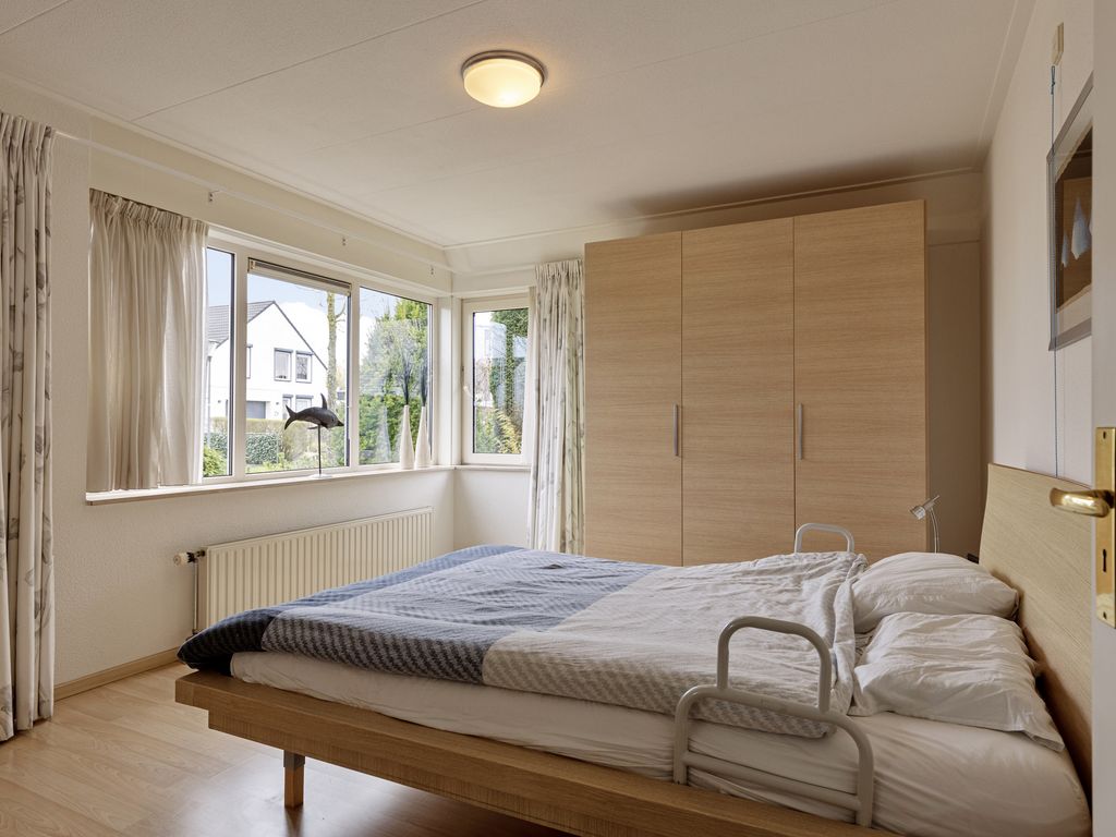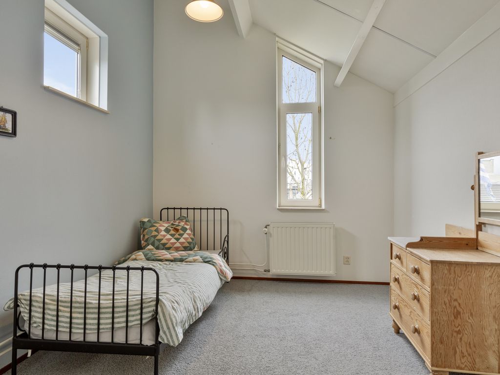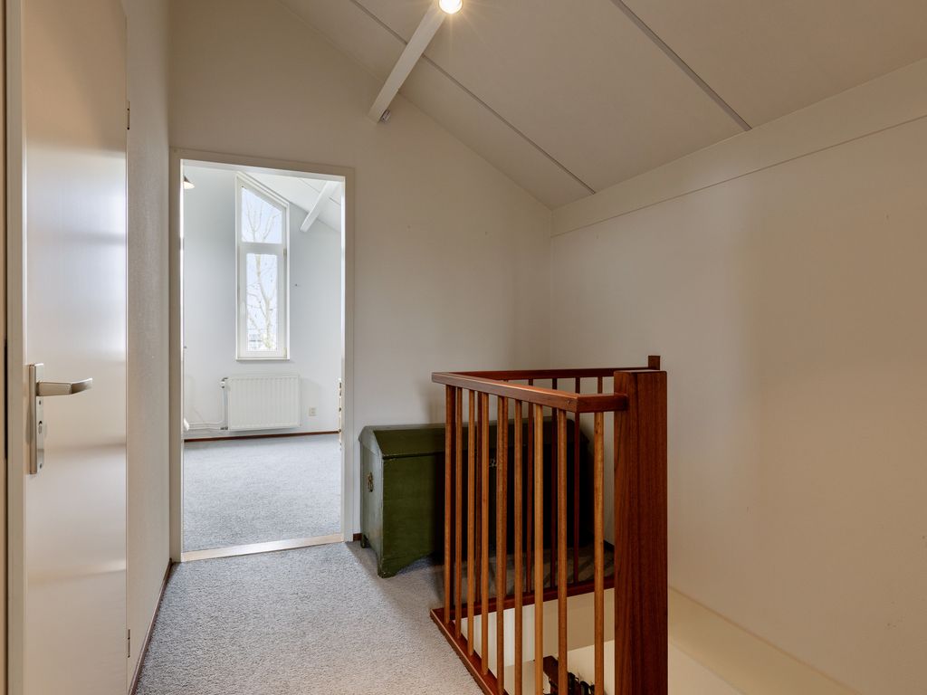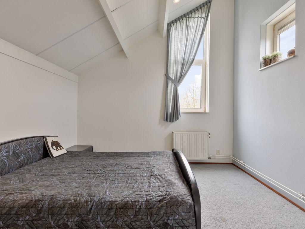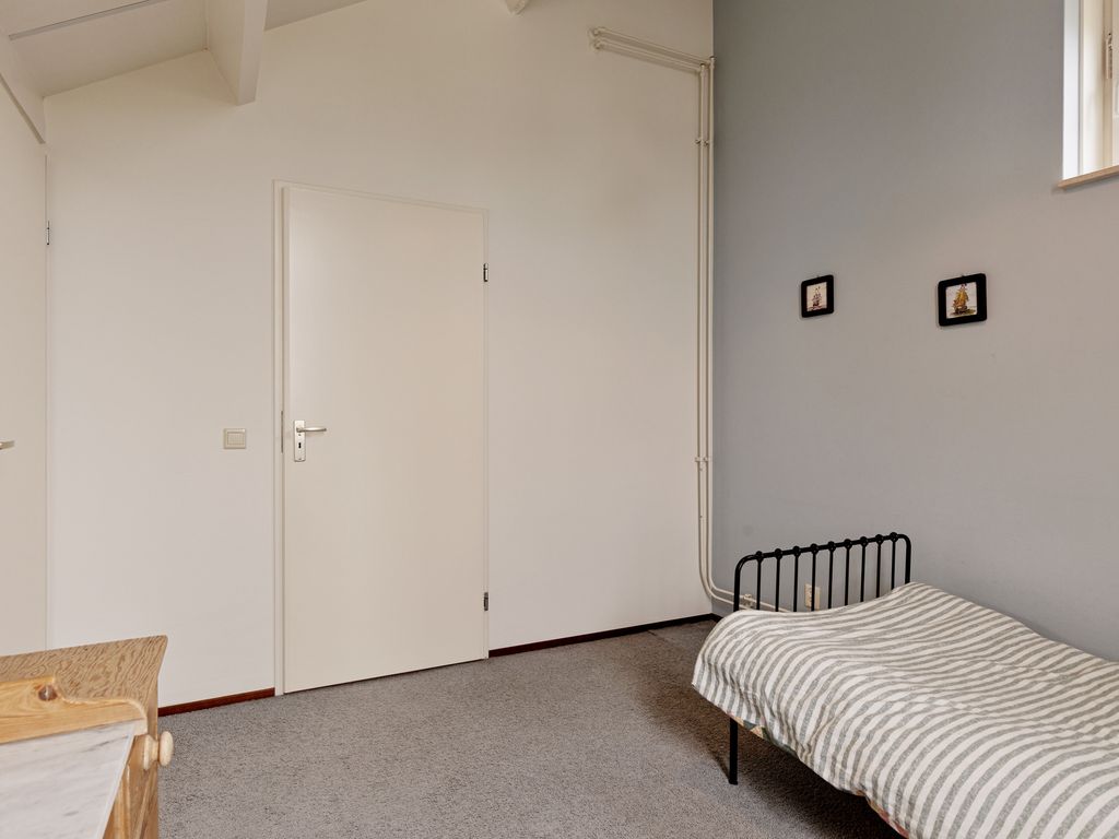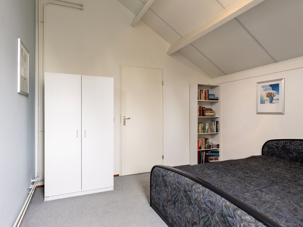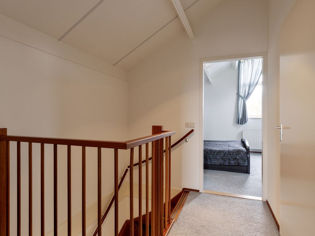 De overloop geeft toegang tot twee slaapkamers en de tweede badkamer. De slaapkamer aan de voorzijde beschikt over een praktische bergruimte. De slaapkamer aan de achterzijde is royaal en biedt een fraai uitzicht over de tuin, het water en de omliggende polder.