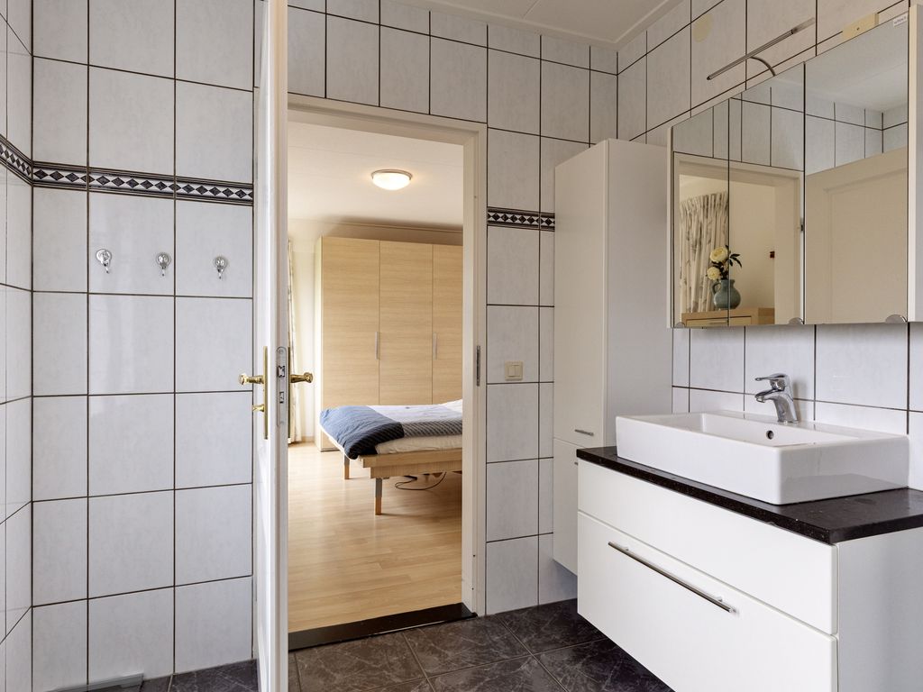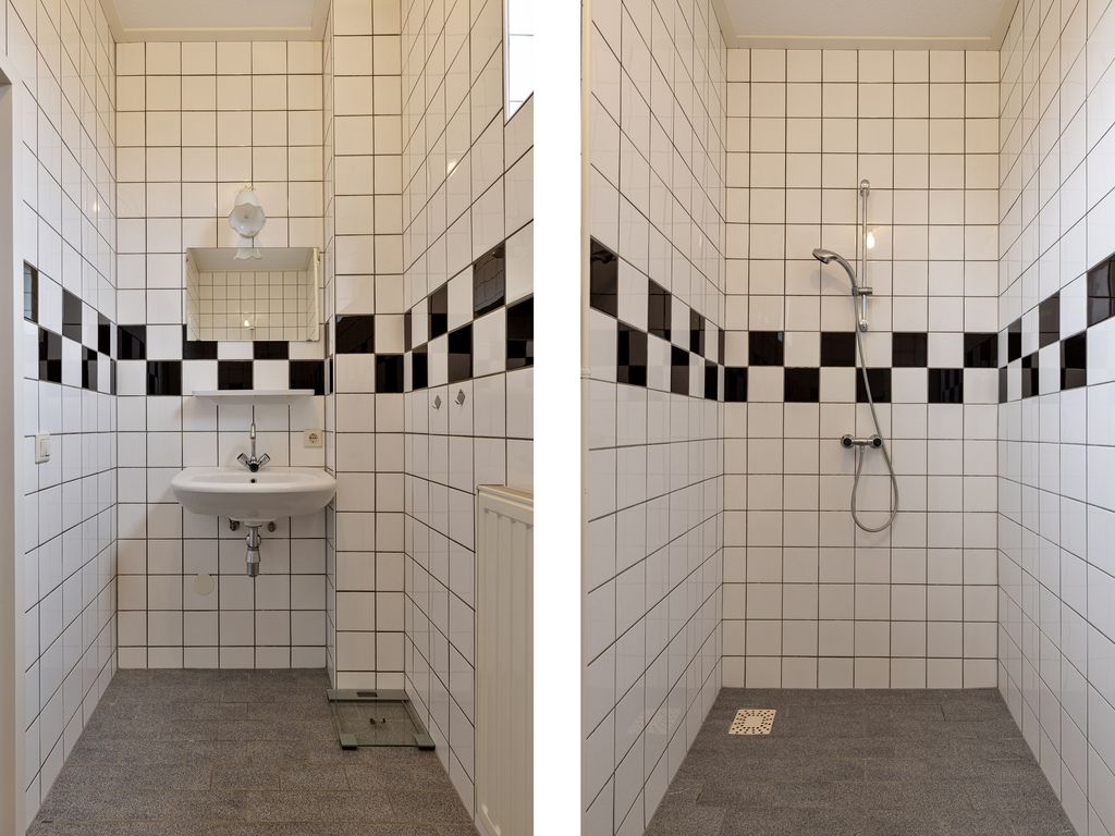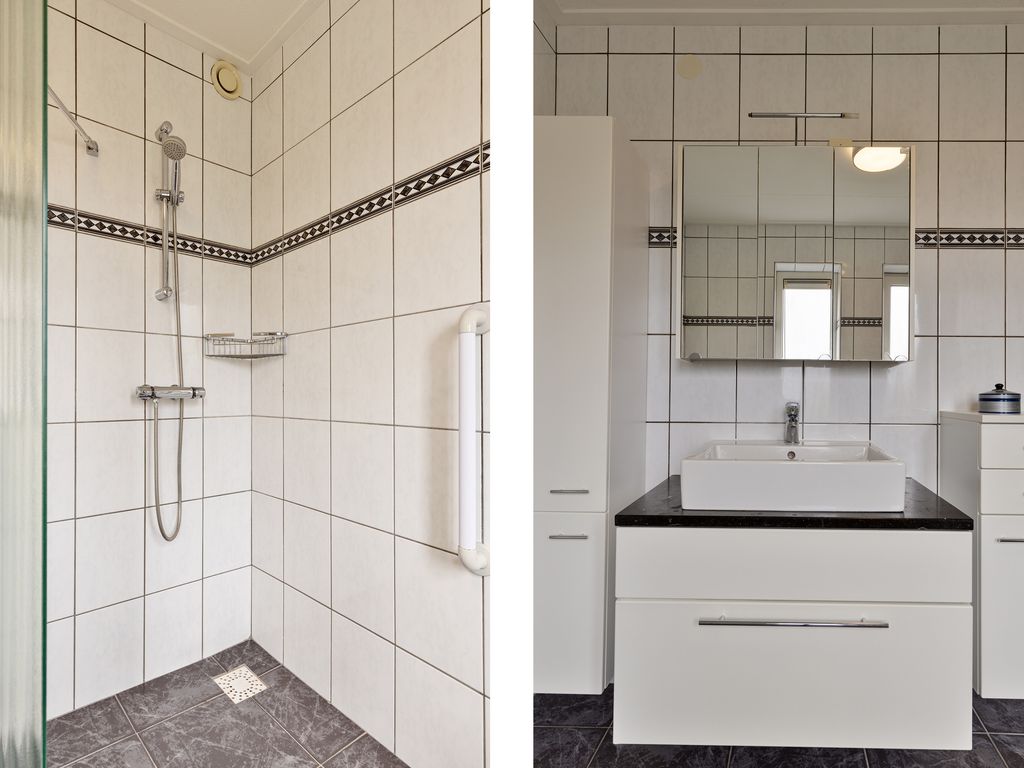 De tweede badkamer is gesitueerd tussen de slaapkamers en voorzien van een inloopdouche en wastafel. Met uitzondering van de badkamer loopt het plafond door tot in de nok, wat zorgt voor een extra ruimtelijk effect.