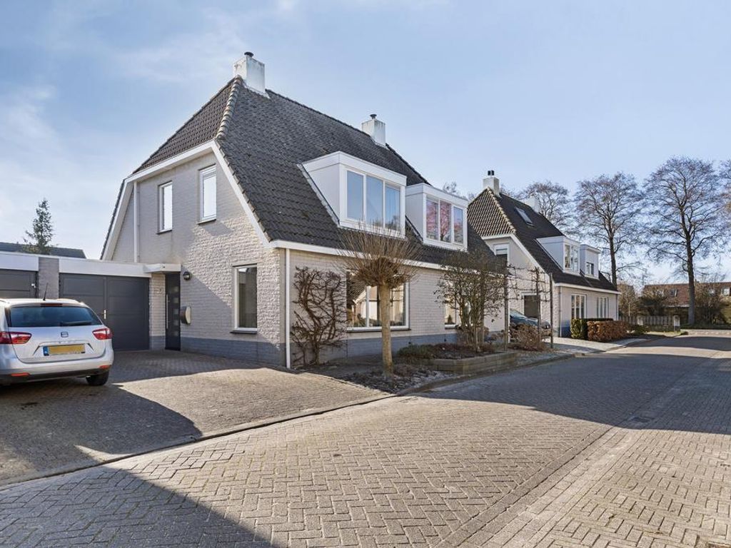 Het woonhuis heeft naar de garage toe een flinke oprit aan de linkerzijde en biedt ruimte voor 1 auto. De voortuin is onderhoudsvriendelijk aangelegd met een border met laag blijvend groen, rondom een terras van bestrating, en enkele boompjes.