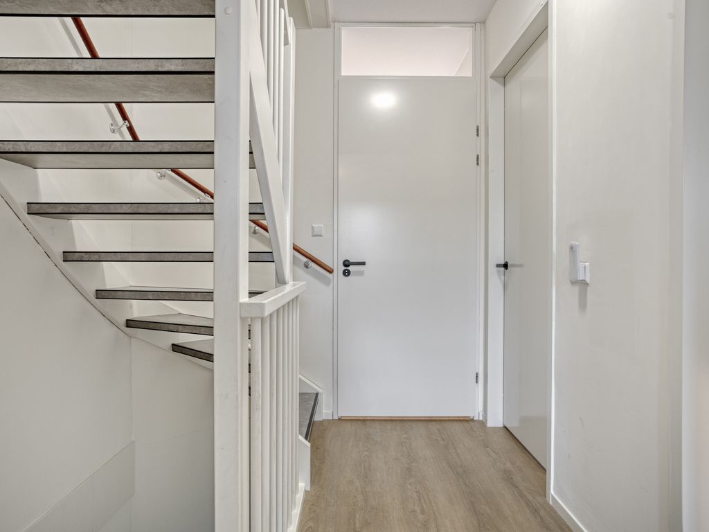 Via de voortuin bereikt u de entree van de woning. In de hal bevinden zich de meterkast, het toilet met fonteintje en de trapopgang naar de eerste verdieping. Een stijlvolle deur met glaswerk geeft toegang tot het woongedeelte.