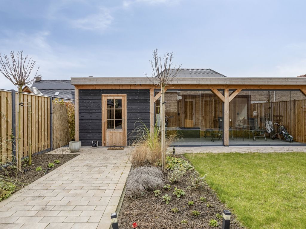 Moderne hoekwoning met serre, garage en tuin in Krabbendijke