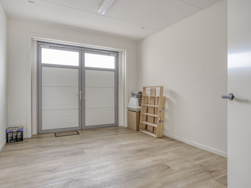 De garage is bereikbaar via de zijkant van de woning en beschikt over geïsoleerde deuren aan de voorzijde. Het achterste deel is ingericht als bijkeuken en voorzien van een buitendeur naar de tuin.