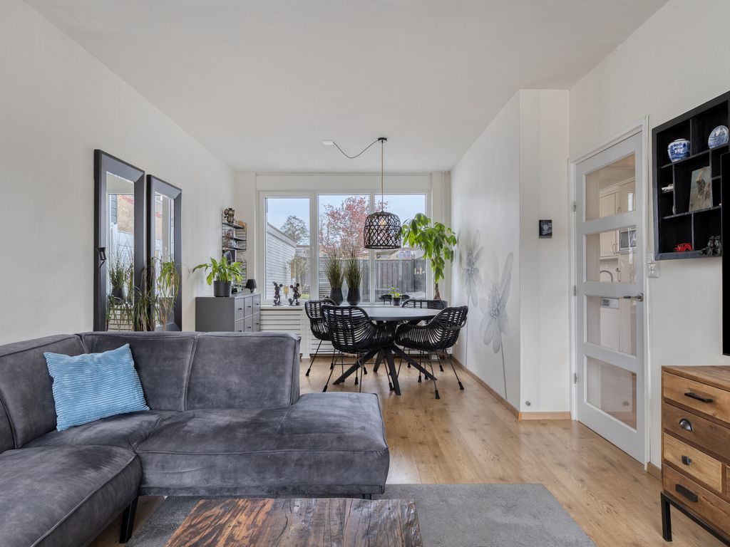 De lichte woonkamer bevindt zich aan de voorzijde en profiteert dankzij de zuidligging van veel daglicht. De eethoek is gesitueerd aan de achterzijde, maar de indeling is eenvoudig naar wens aan te passen.