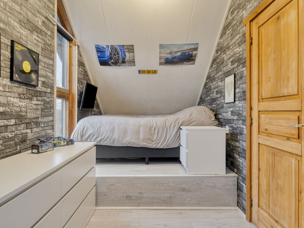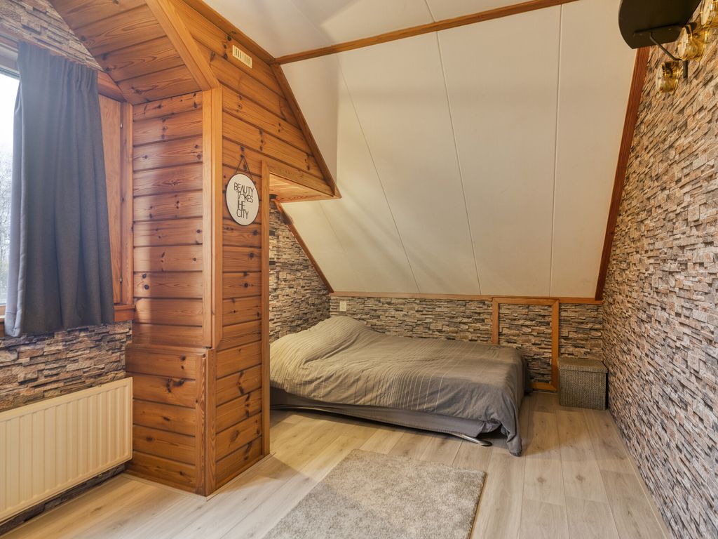 Dit houten Finnhouse straalt warmte, karakter en duurzaamheid uit. Het gebruik van hout zorgt voor een uitstekende isolatie (energielabel B) en creëert een natuurlijke, gezonde leefomgeving. De woning is goed onderhouden en beschikt over een moderne keuken, een recent vernieuwde badkamer en een luxe wellnessruimte met jacuzzi. Hier gaat comfort hand in hand met stijl en energiezuinig wonen.