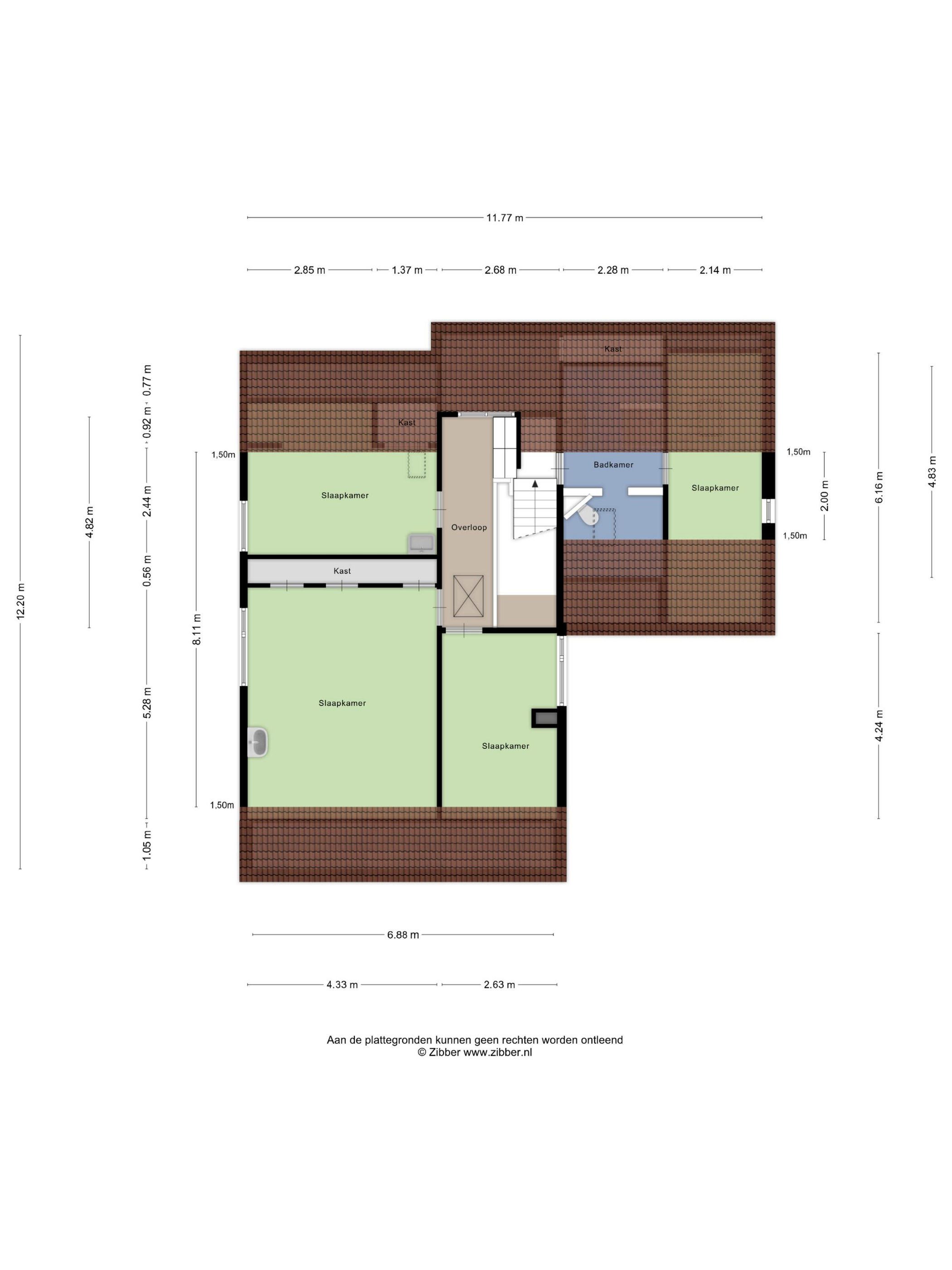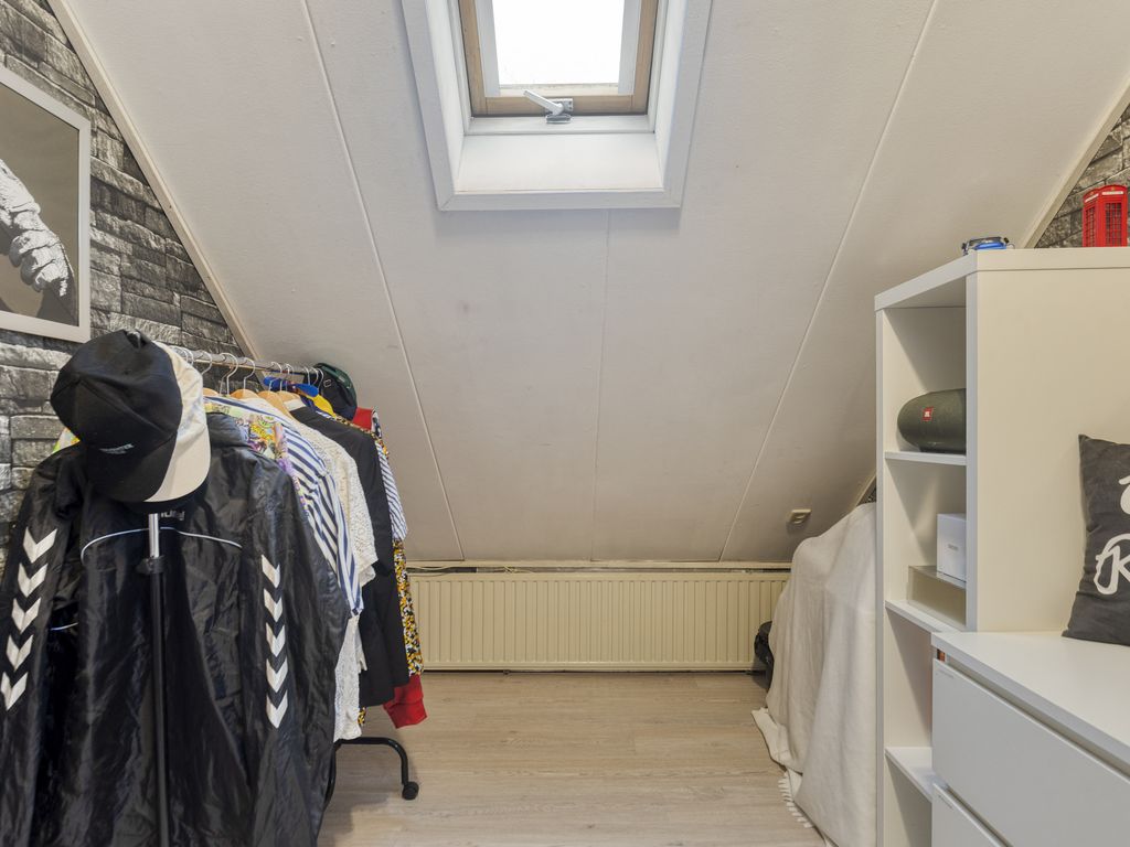 De eerste slaapkamer bevindt zich aan de achterzijde van de woning en is voorzien van een leuke nis voor een eenpersoonsbed, een wastafel, een inbouwkast en een dakraam. Naast deze kamer ligt de grootste slaapkamer, eveneens aan de achterzijde, ook voorzien van een wastafel, een grote kastenwand en extra bergruimte onder het dakbeschot. De derde slaapkamer ligt aan de voorzijde van de woning en heeft een speelse indeling en een voorbereiding voor een wastafel, daarnaast heeft ook deze kamer extra bergruimte onder het dakbeschot.