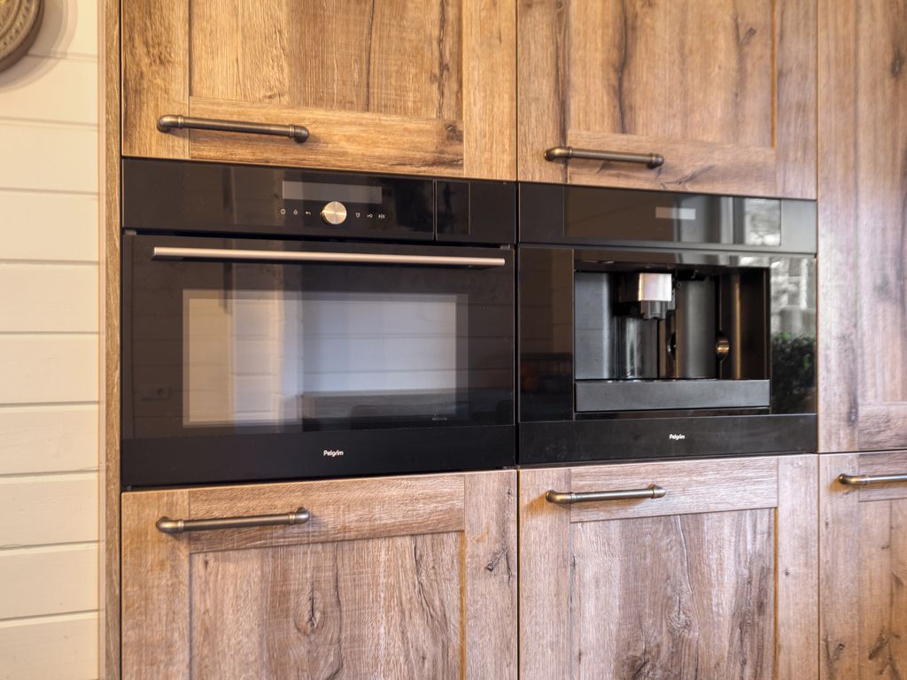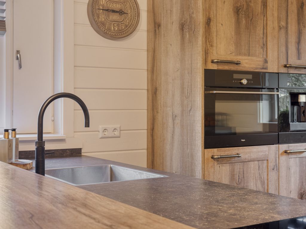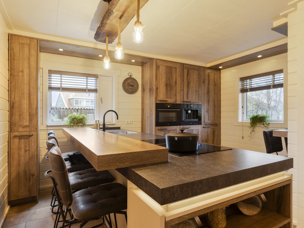 Rechts van de woonkamer ligt de woonkeuken, vernieuwd in 2020. Deze is uitgerust met een stijlvol kookeiland met bargedeelte; een ideale plek om koken en gezelligheid samen te brengen. De keuken beschikt over een inductiekookplaat met bladafzuiging, koelkast, vrieskast, vaatwasser, combi-stoomoven en een ingebouwd koffieapparaat.