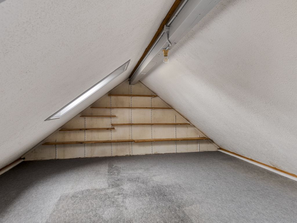 Vanaf de overloop bereikt u met een vlizotrap de ruime zolder. Deze zolder is op stahoogte, beschikt over twee dakramen en is een ideale opbergruimte voor grote en kleine spullen.