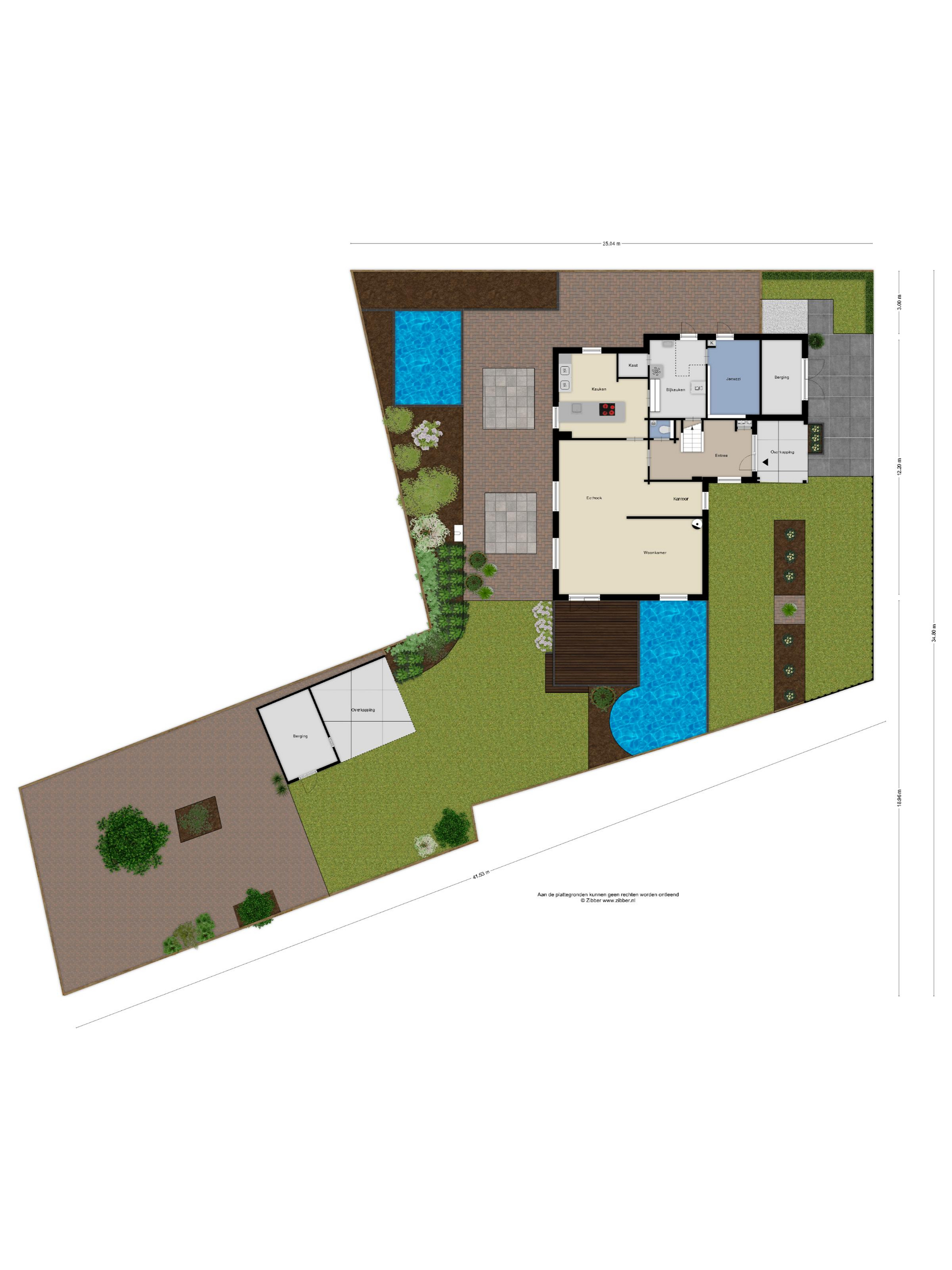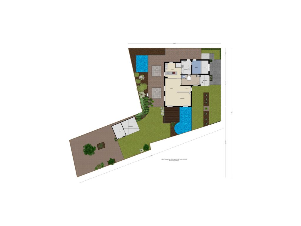 - Grote tuin rondom, met terras, vijverpartijen en houten veranda op een perceel van 696 m²