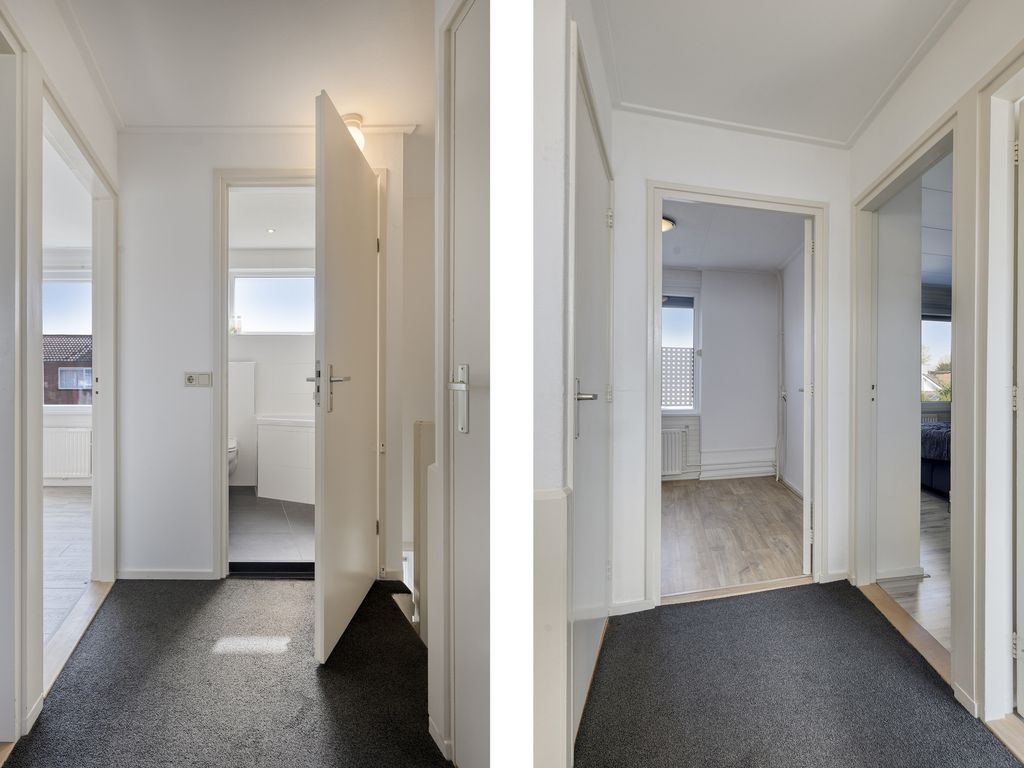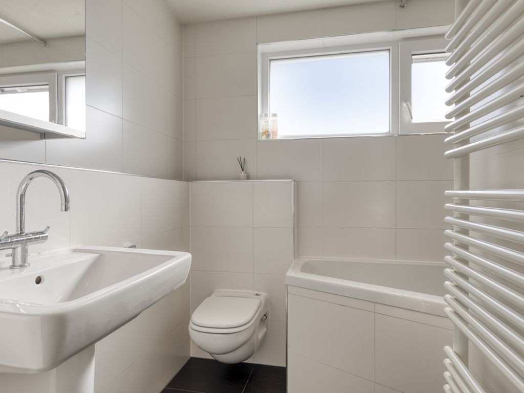 Vanaf de overloop bereikt u drie slaapkamers en de badkamer. Aan de voorzijde bevindt zich een ruime slaapkamer met daarnaast de badkamer. Deze nette badkamer is voorzien van een ligbad met douche, een toilet en een wastafel met spiegelkast.