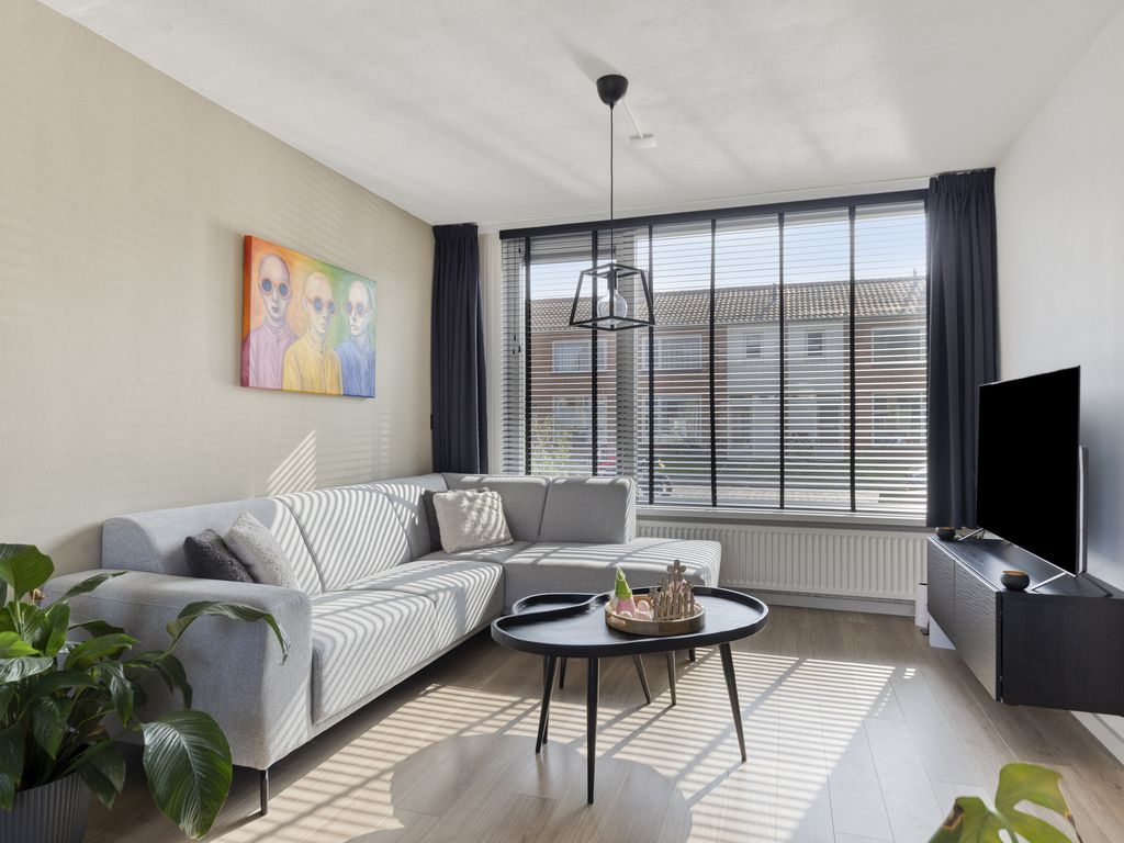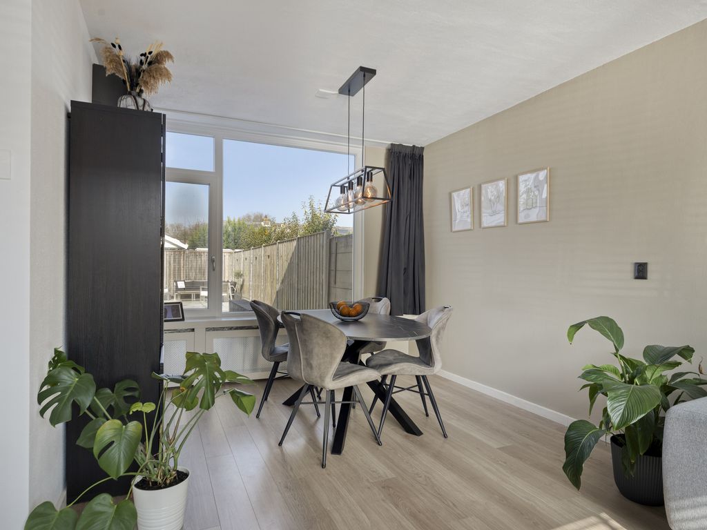 De doorzonwoonkamer is ruim van opzet en valt direct op door de grote raampartijen die zorgen voor veel daglicht. De ruimte biedt voldoende plaats voor een comfortabele zithoek aan de voorzijde en een royale eethoek richting de keuken. Daarnaast is deze ruimte voorzien van een zo goed als nieuwe airco.