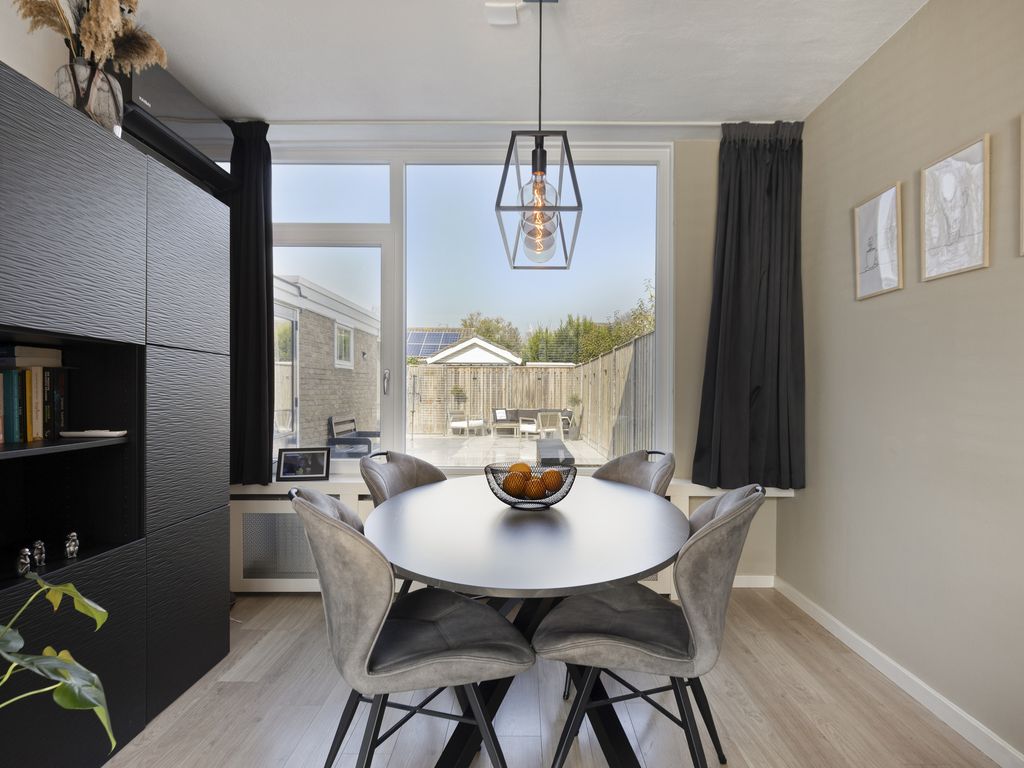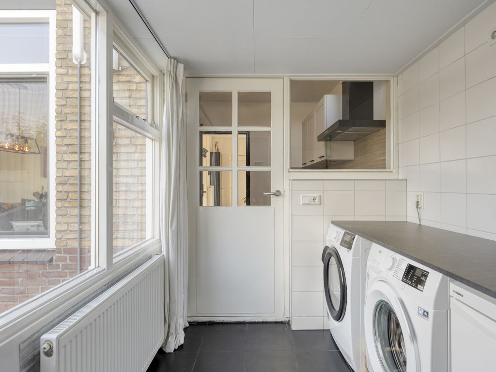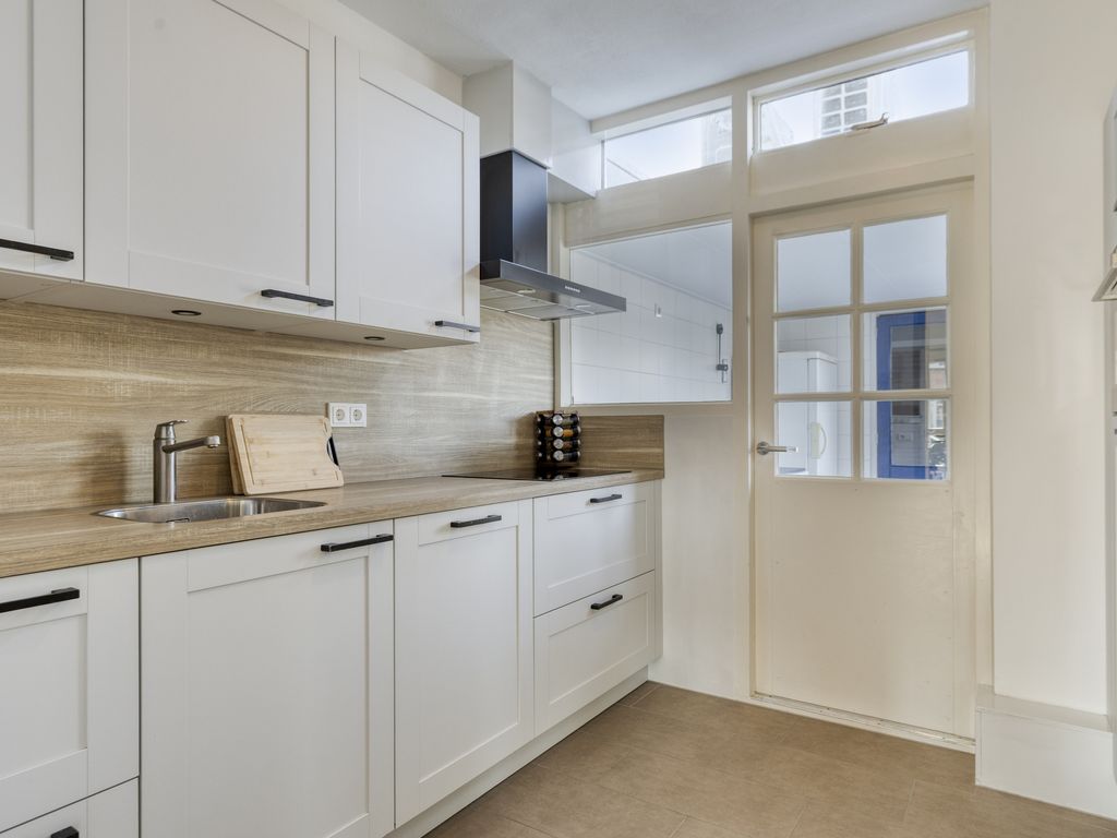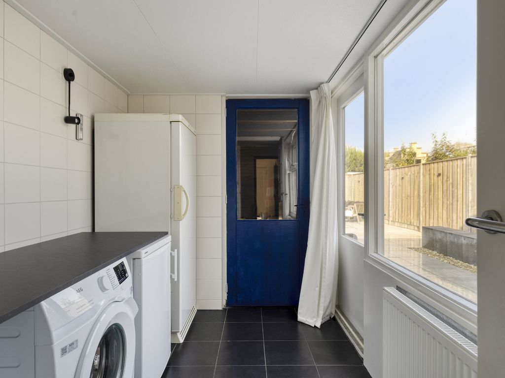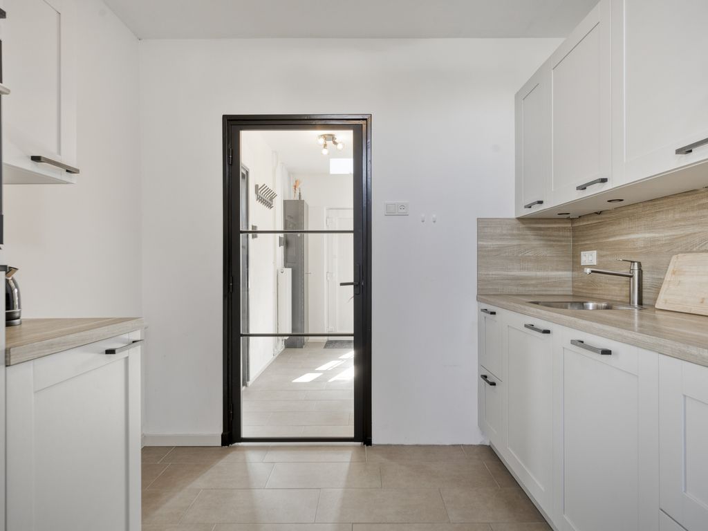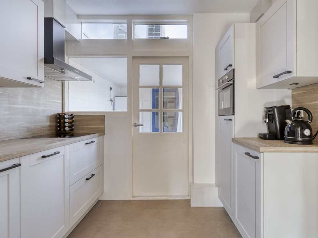 De keuken is in 2022 vernieuwd en uitgevoerd in een moderne opstelling. Deze is voorzien van diverse inbouwapparatuur, waaronder een afzuiginstallatie, 4-pits inductiekookplaat, vaatwasser, koelkast, keukenboiler en een combimagnetron. Aansluitend bevindt zich de praktische bijkeuken met aansluitingen voor wasmachine en droger. Vanuit hier is er een deur naar de tuin. Achter de bijkeuken ligt nog een ruime inpandig bereikbare berging, ideaal voor extra opslag.