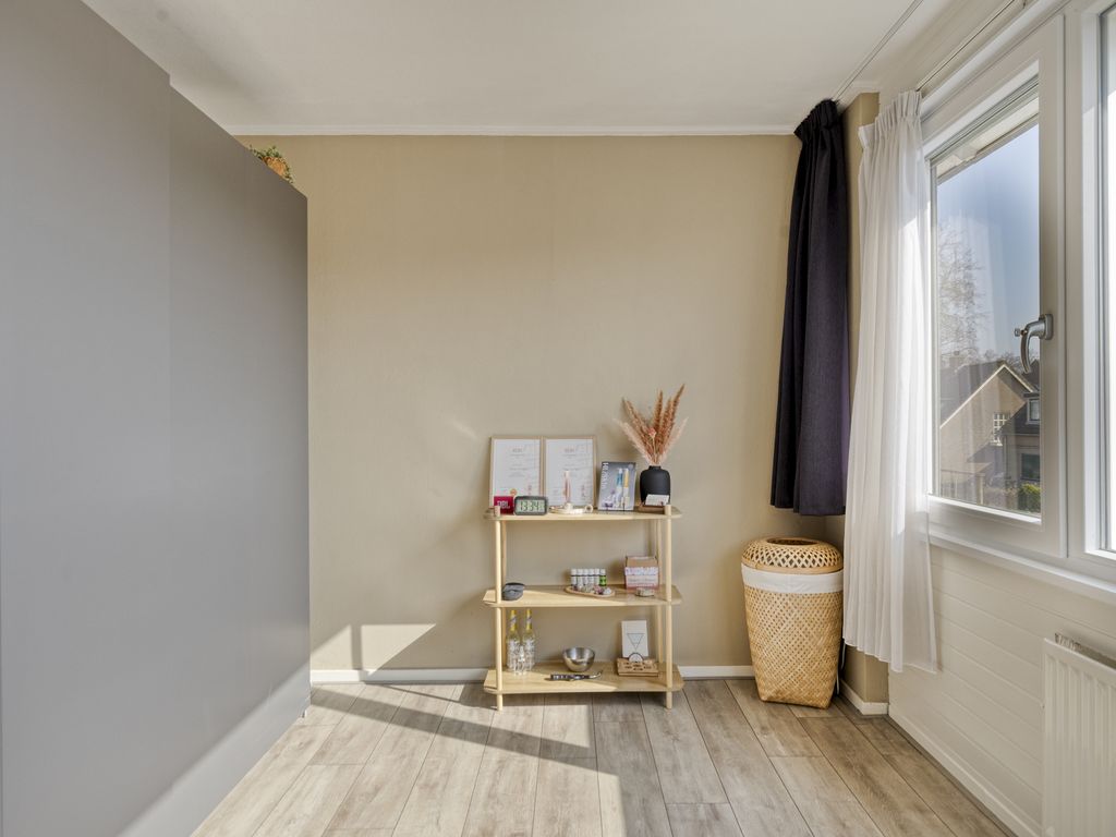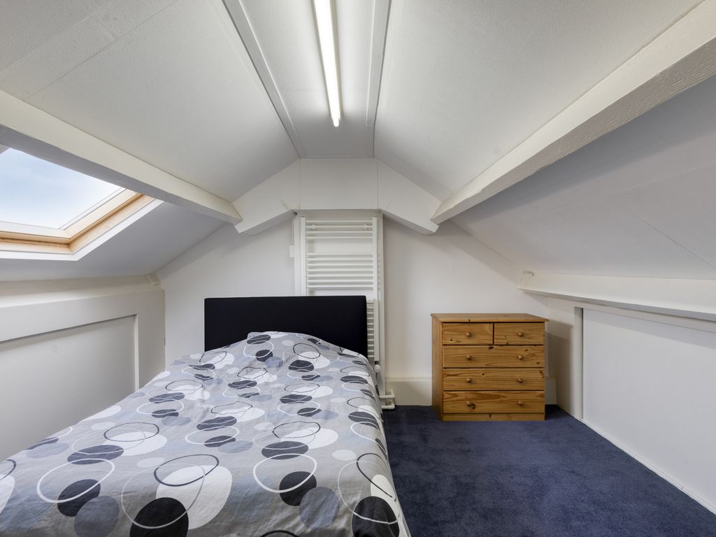 Via een vaste trap, bereikbaar achter een deur op de eerste verdieping, komt u op de tweede verdieping. Op de overloop bevindt zich de cv-installatie (Intergas, 2019) en praktische bergruimte. Vanuit de overloop bereikt u de vierde slaapkamer, een fijne extra kamer met daglicht via een Velux dakraam. Deze ruimte is uitstekend geschikt als slaapkamer, werk- of hobbykamer.