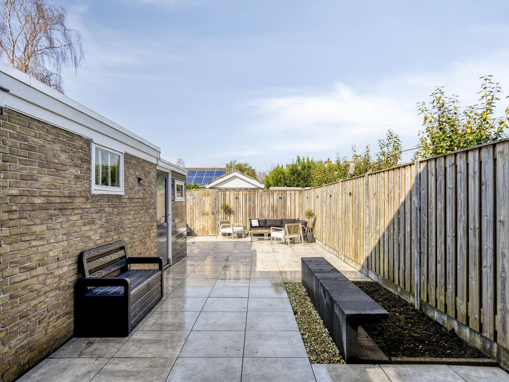 De diepe achtertuin ligt op het noorden en biedt daardoor zowel zon- als schaduwplekken gedurende de dag. De tuin is in 2021 vernieuwd en onderhoudsvriendelijk aangelegd. Achterin de tuin bevindt zich een praktische berging en via de vrije achterom is de tuin eenvoudig bereikbaar. Door de diepte van de tuin is er naast een terras ook volop ruimte voor spelende kinderen.