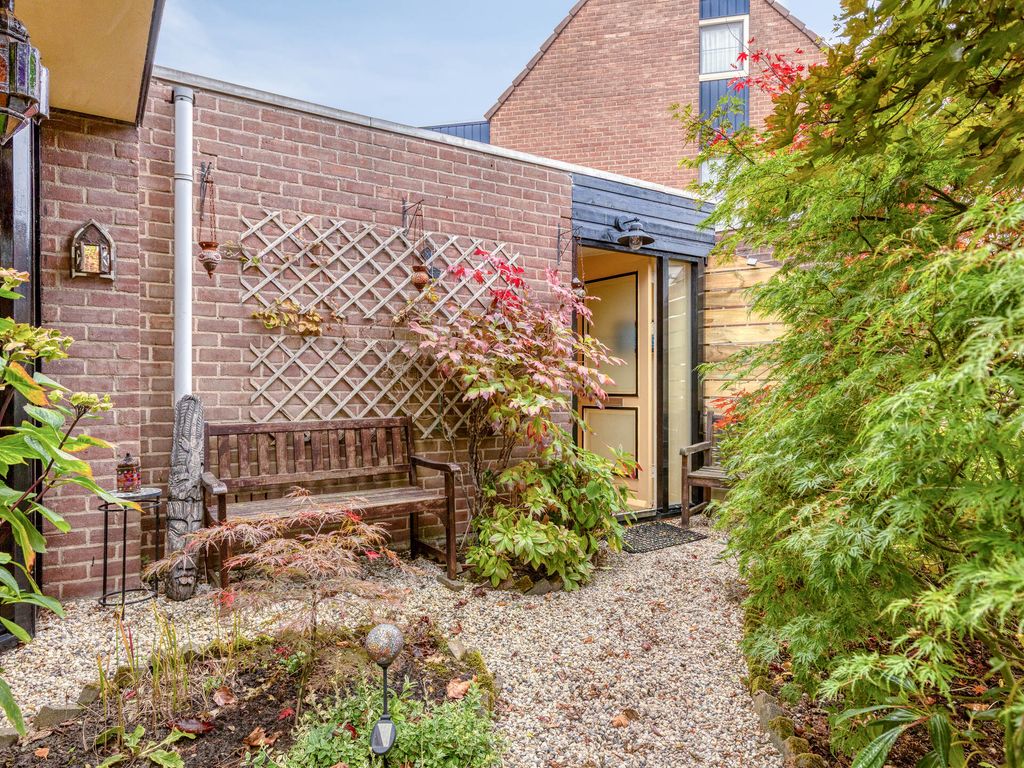 De sfeervolle achtertuin, die taps toeloopt naar het erachter gelegen plein, heeft een geweldige kleurenpracht door de grote volwassen struiken en bomen, die in elk jaargetijde weer net even anders is. Er zijn verschillende zitjes voor in de zon, schaduw of luwte. Voor een speciaal moment is er is altijd wel een leuke plek onder de pergola te vinden en gegarandeerd veel privacy.