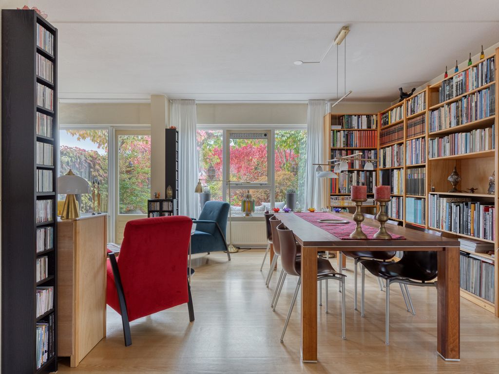 De woonkamer (ca. 32 m²) staat in halfopen verbinding met de aan de voorzijde gelegen keuken (ca. 12 m²). Op de begane grond ligt een mooie parketvloer (essenhout). Vanuit de woonkamer heeft u een onbelemmerd uitzicht op de fraaie kleurrijke tuin.