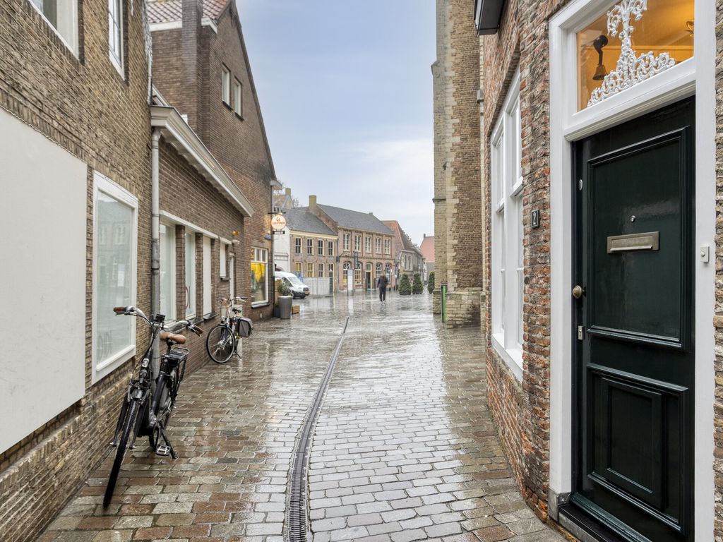 Bij aankomst voelt u direct dat u zich in het historische hart van Goes bevindt. De imposante Grote of Maria Magdalenakerk torent boven de omgeving uit en precies tegen deze kerk is rond 1599 dit bijzondere huis gebouwd. De entree ligt direct aan het Kattenstraatje; via de voordeur komt u in een lichte hal met garderobe, meterkast en de deur naar de woonkamer.