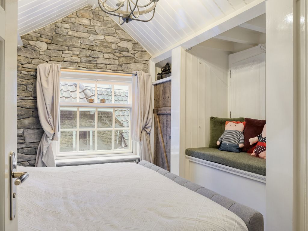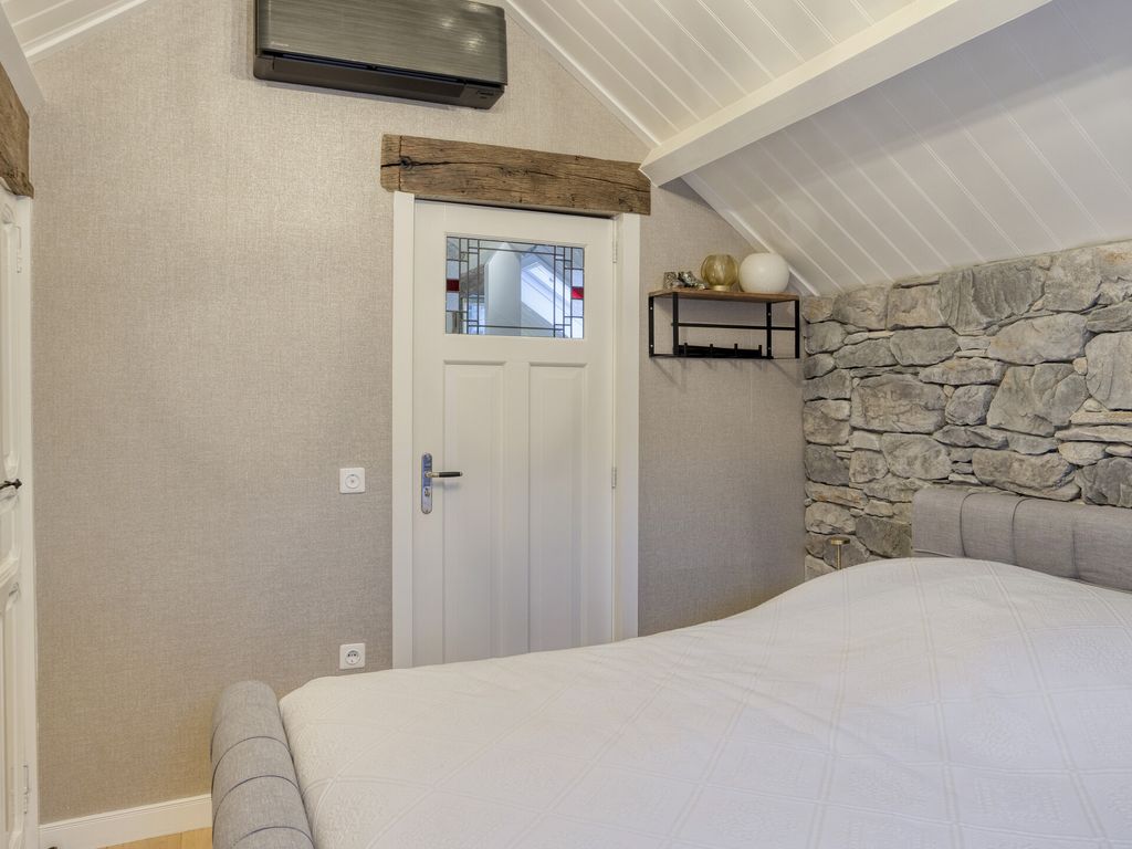 De slaapkamer aan de voorzijde is ruim genoeg voor een comfortabel tweepersoonsbed en ademt dezelfde warme sfeer als beneden. Een klassiek venster én een dakkapel zorgen voor licht en ruimte. Daarnaast zijn er twee ruime ingebouwde kasten en is de kamer voorzien van airconditioning.