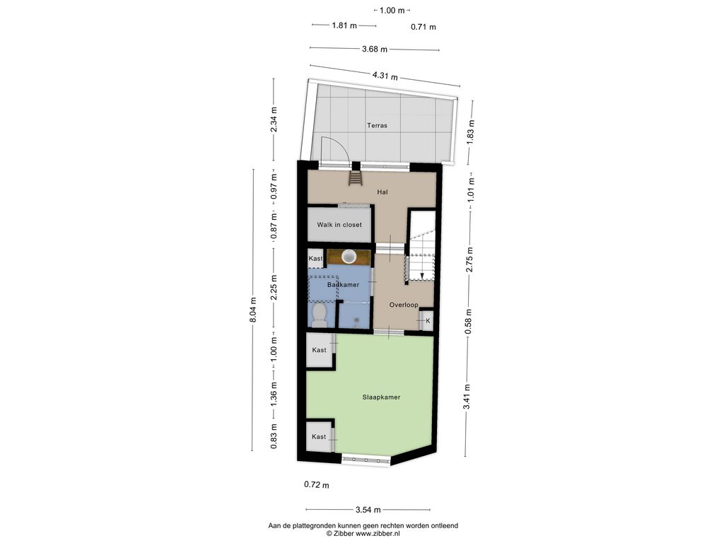 Aan de achterzijde bevindt zich een extra kamer met schuifdeur en grote inbouwkast. Deze kamer geeft toegang tot het dakterras. De inbouwkast is zo ruim dat hier desgewenst een slaapnis van gemaakt kan worden, waardoor een tweede (logeer)kamer ontstaat.