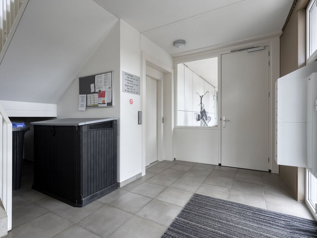 Vanaf de representatieve hoofdentree van het gebouw bevindt zich dit appartement direct rechts van de entree, wat zorgt voor extra gemak en privacy.
