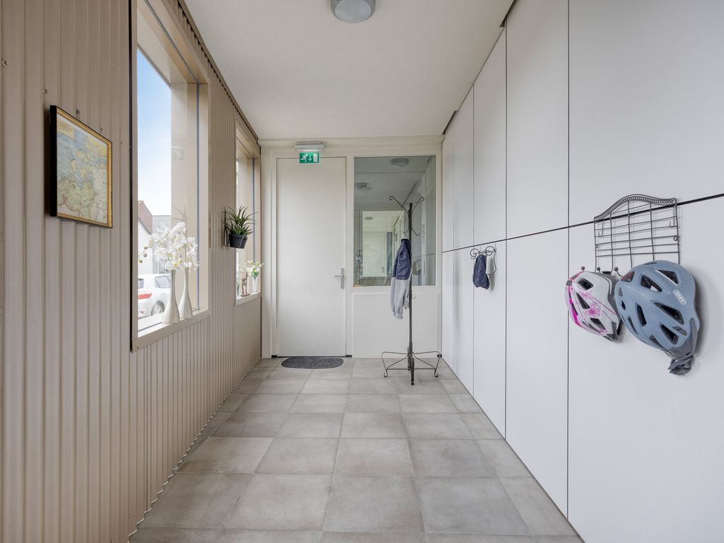 Bij binnenkomst komt u in de ruime hal met toegang tot alle vertrekken. Als eerste treft u de meterkast met daarnaast een technische ruimte met CV-opstelling (Nefit, 2010). Erg handig en praktisch is de extra berging van circa 3 m², ideaal voor het opbergen van spullen. Hier is ook de wasmachine-aansluiting gesitueerd.