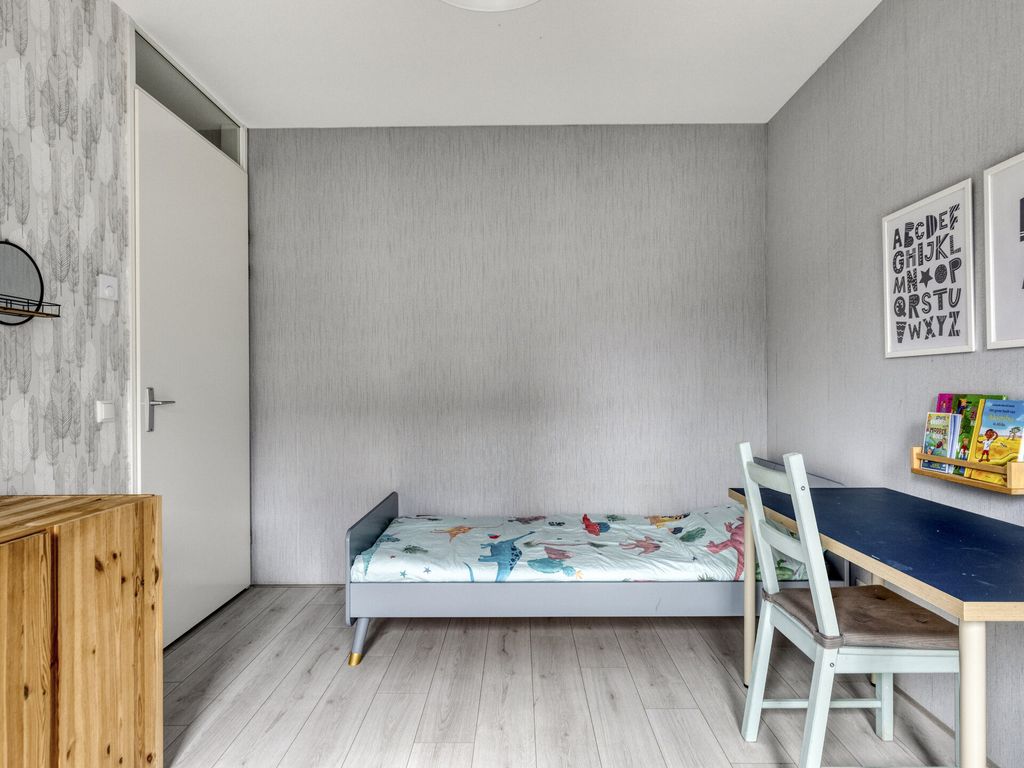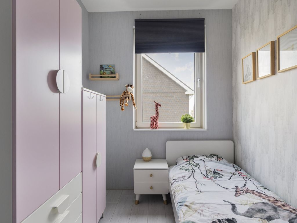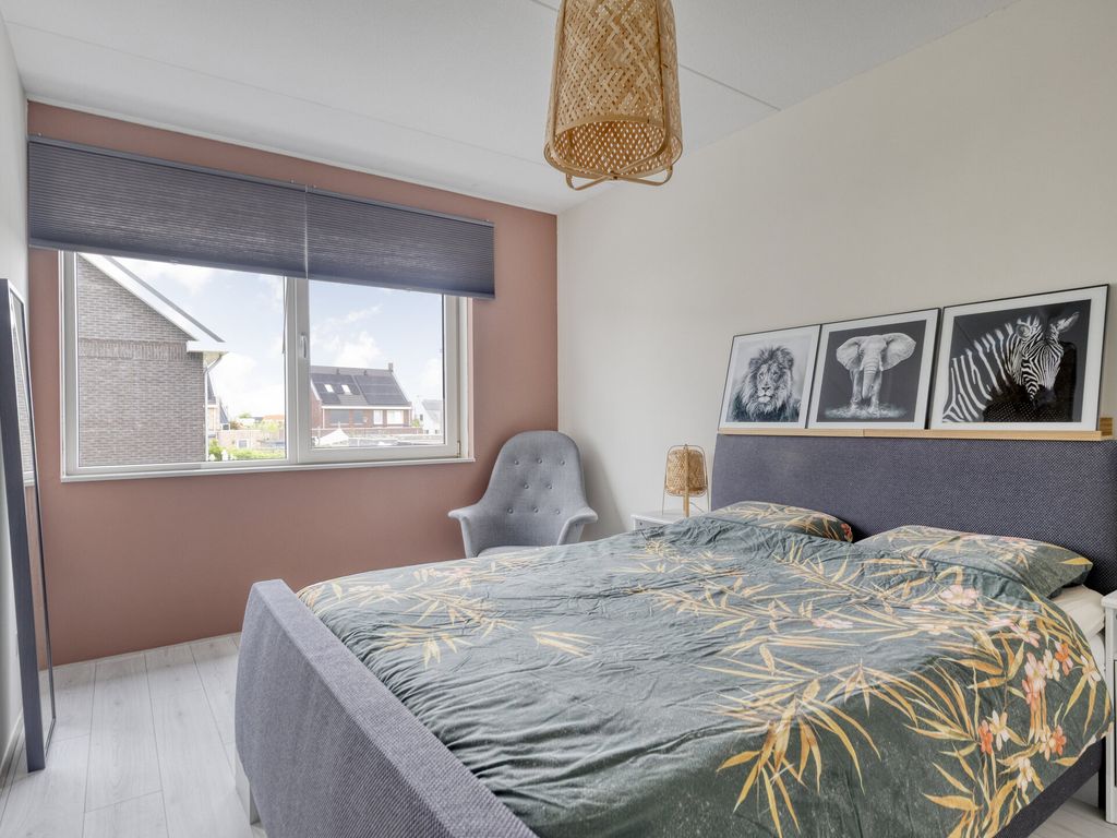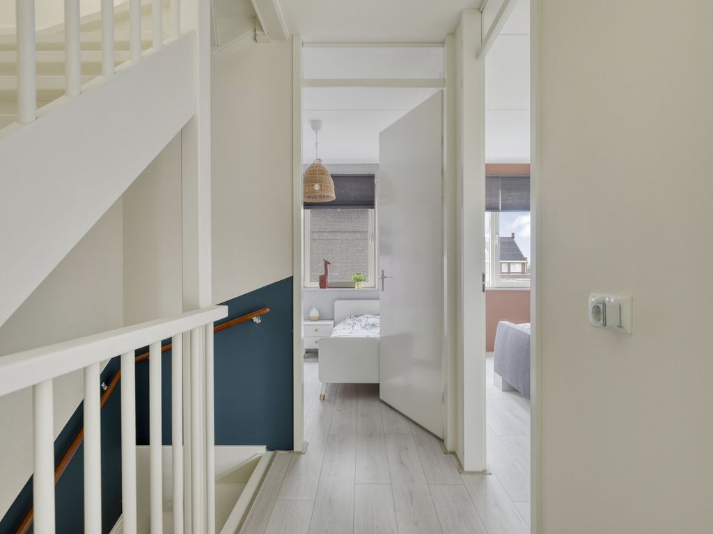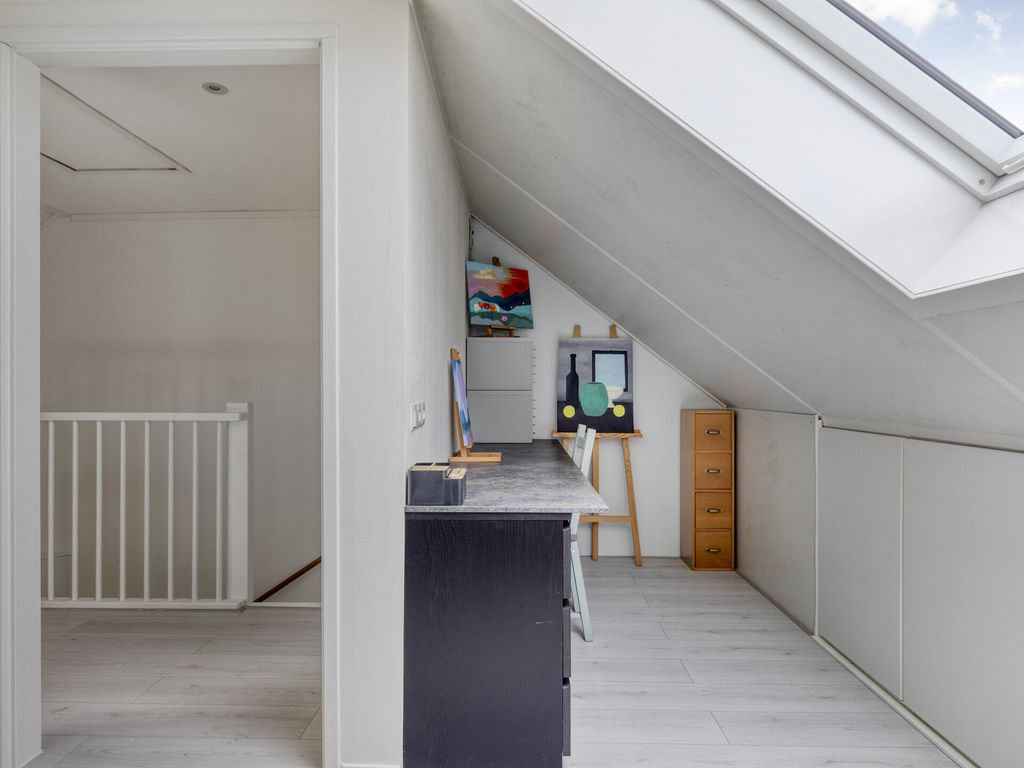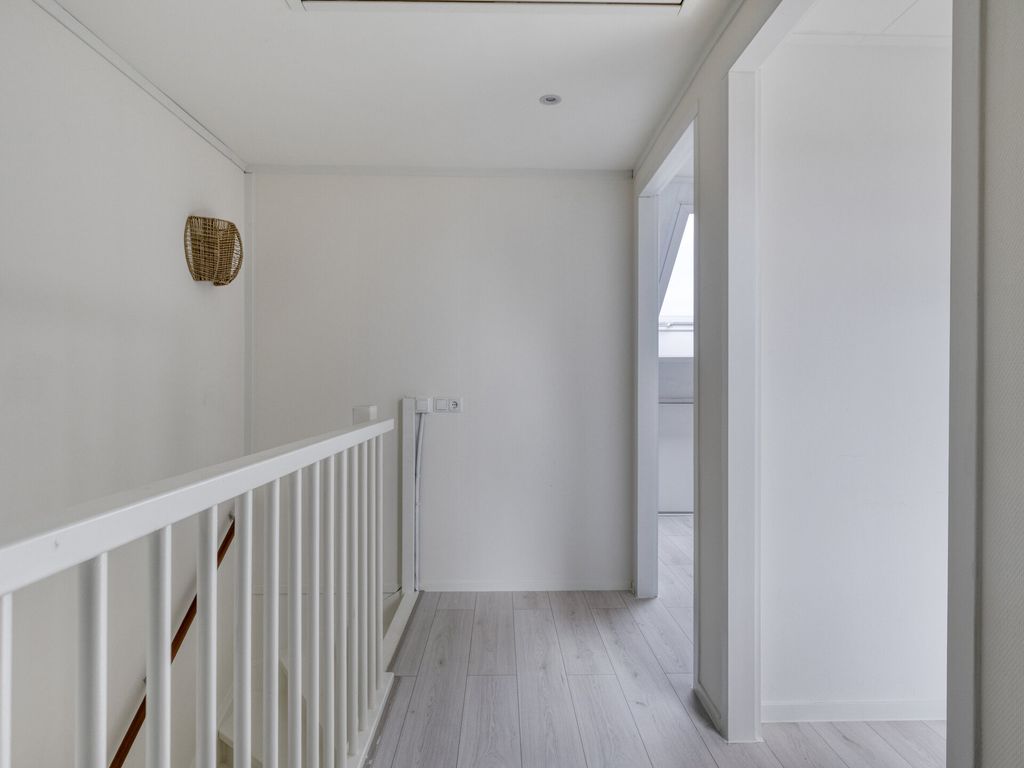 De vaste trap brengt u naar de royale zolderverdieping. Hier zijn twee ruime slaapkamers gerealiseerd, beide met een dakraam. De slaapkamer aan de voorzijde beschikt bovendien over praktische bergruimte onder het knieschot. Op de overloop zijn de witgoedaansluitingen, CV-installatie (Intergas, 2017), de omvormer van de zonnepanelen en de mechanische ventilatie netjes weggewerkt. Vanaf de overloop heeft u via een vlizotrap toegang tot de handige opbergzolder.