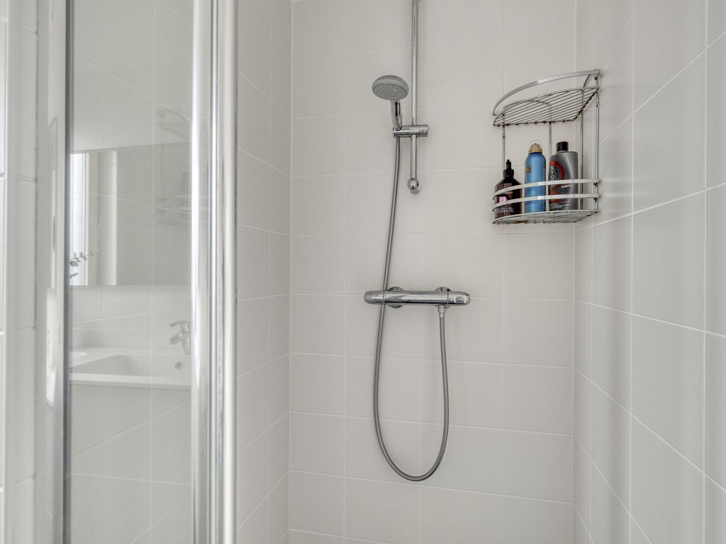 Op de eerste verdieping vindt u drie slaapkamers en de badkamer. Aan de voorzijde bevindt zich een ruime slaapkamer met kamerhoge ramen en de badkamer. Deze moderne badkamer is voorzien van een inloopdouche, dubbele wastafel, designradiator en een tweede toilet. Aan de achterzijde liggen nog twee slaapkamers, een royale ouderslaapkamer en een gezellige kinderkamer.