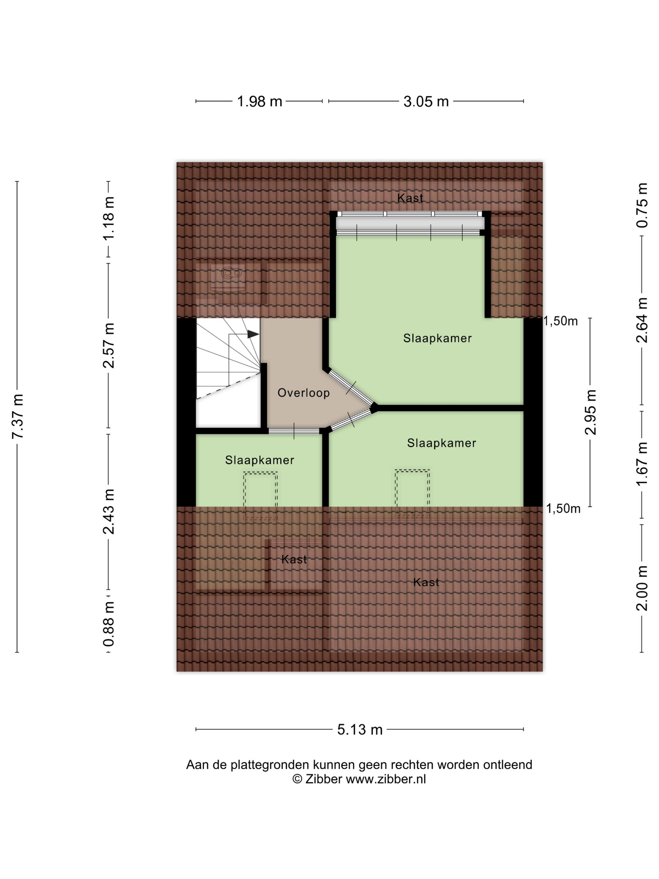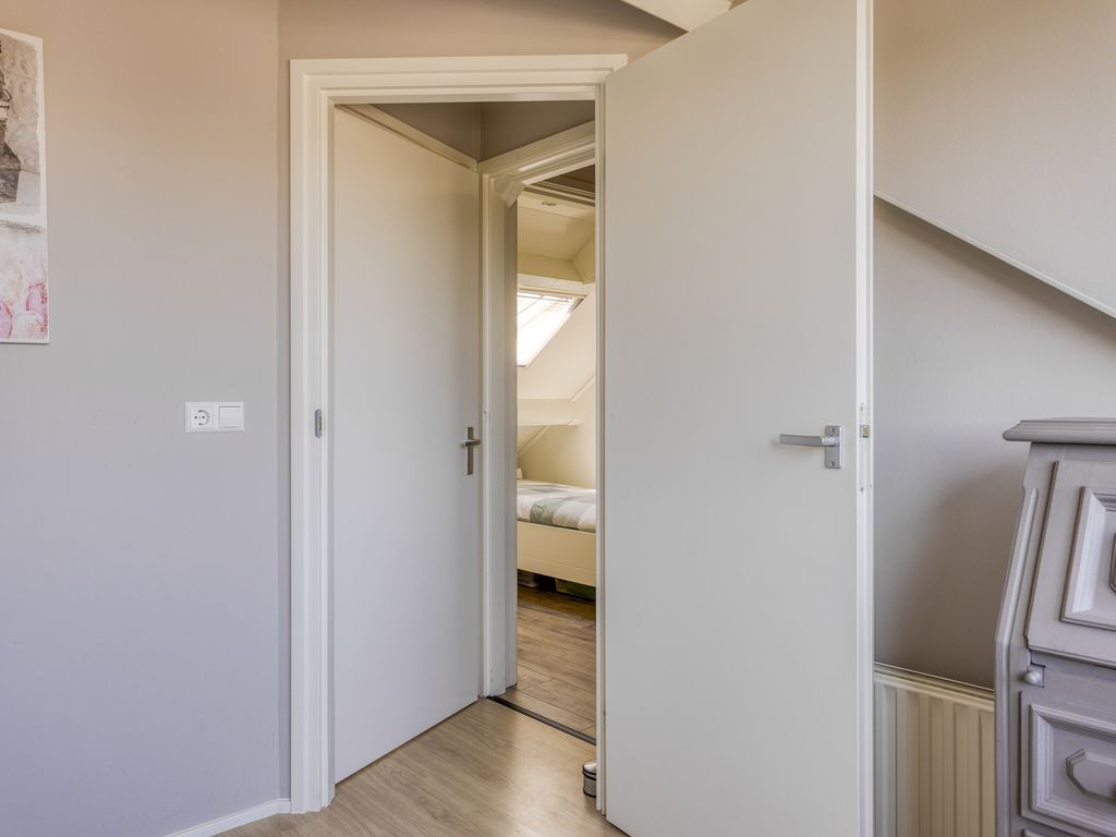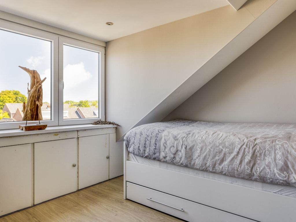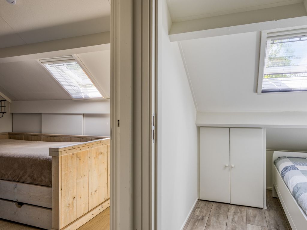 Via de vaste trap komt u op de zolderverdieping met op de overloop de cv-opstelling (Vaillant, 2024). Hier vindt u nog eens drie slaapkamers: twee aan de voorzijde, beide met dakraam en inbouwkasten, en een ruime slaapkamer aan de achterzijde met royale dakkapel en vaste bergingen.