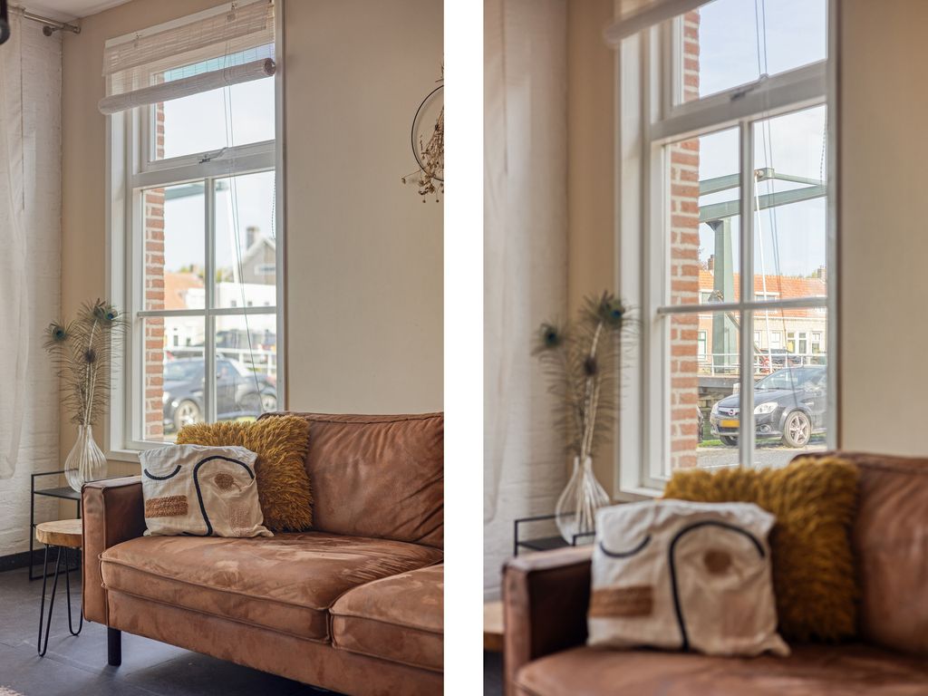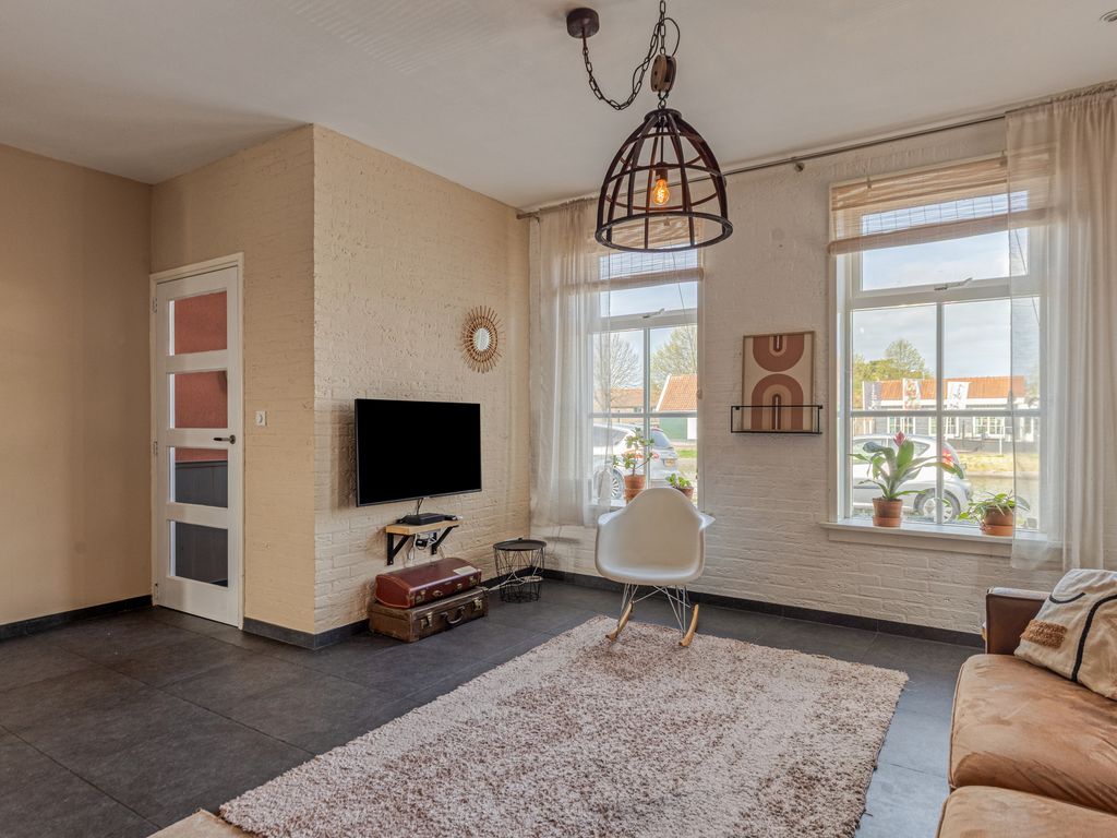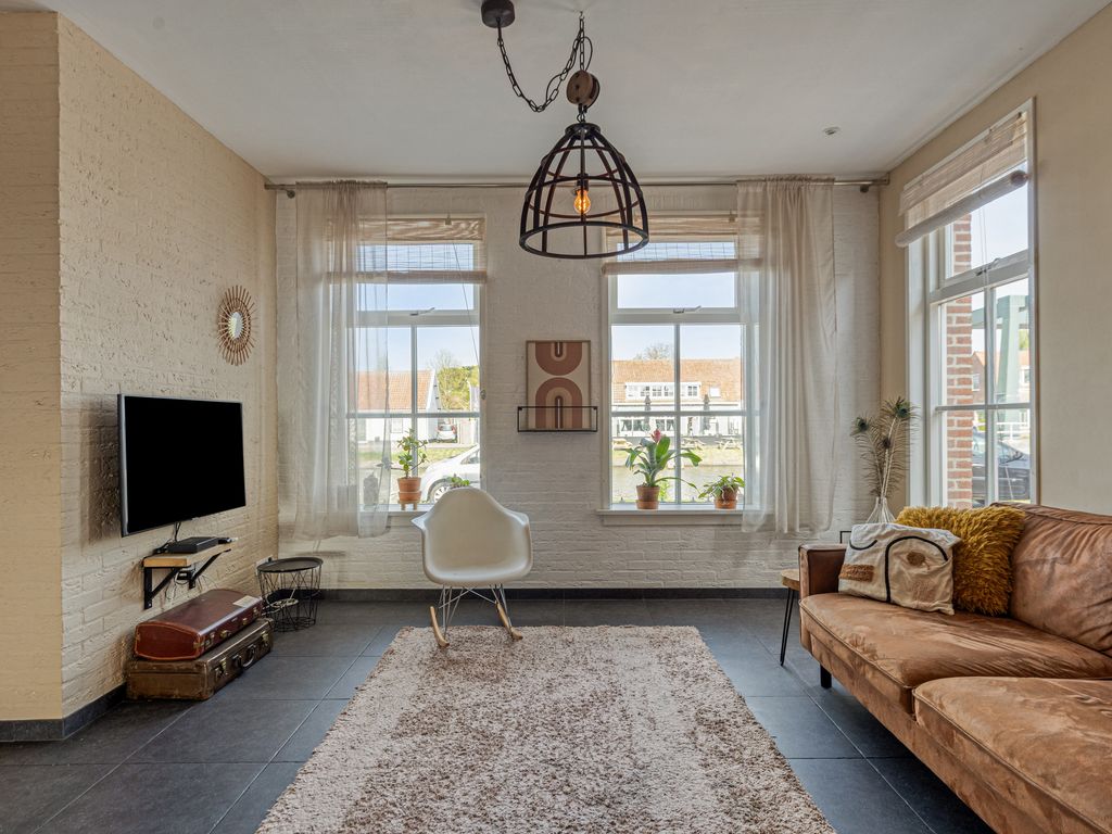 - Lichte woonkamer met zicht op het kanaal