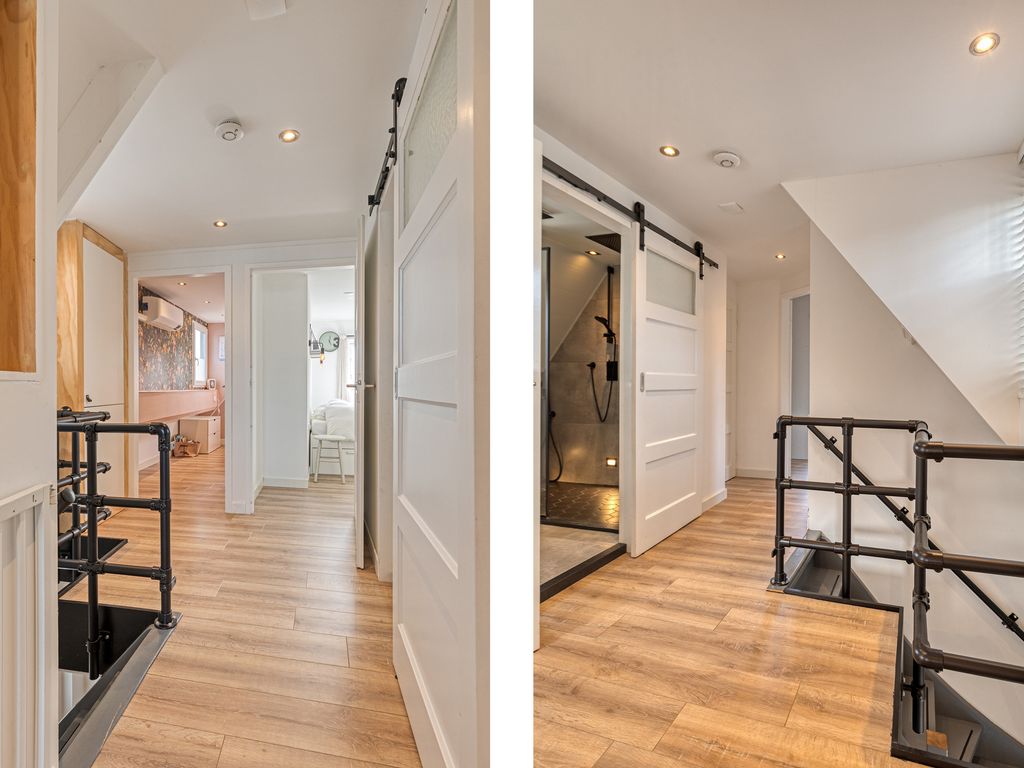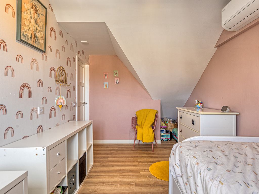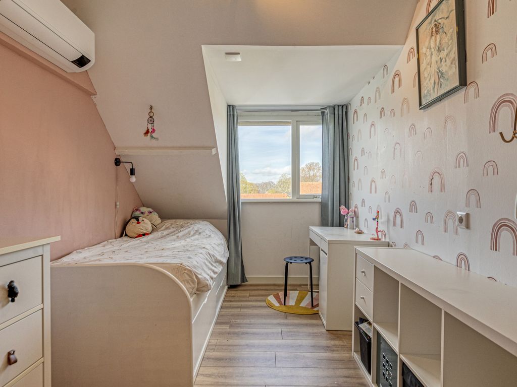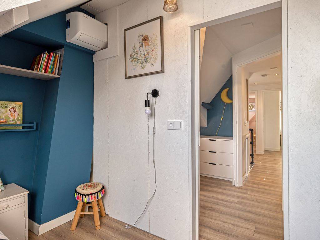 De overloop geeft toegang tot vier slaapkamers en de badkamer. Door de uitbouw aan de achterzijde en de aanwezigheid van twee grote dakkapellen is er opvallend veel ruimte gecreëerd. Aan de achterzijde bevinden zich twee ruime slaapkamers, waaronder de hoofdslaapkamer. De overige twee kamers liggen aan de voorzijde en hebben een speelse indeling. Alle slaapkamers zijn voorzien van airconditioning.