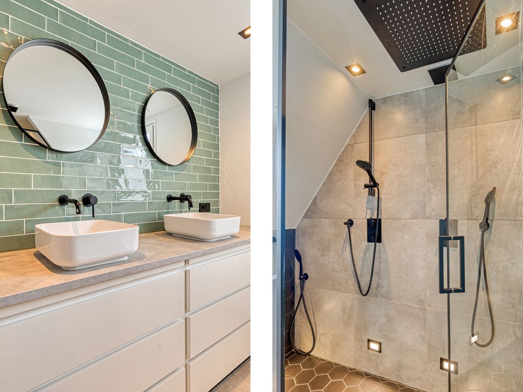 - Moderne badkamer met regendouche en dubbele wastafel