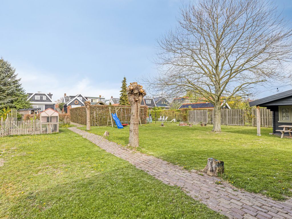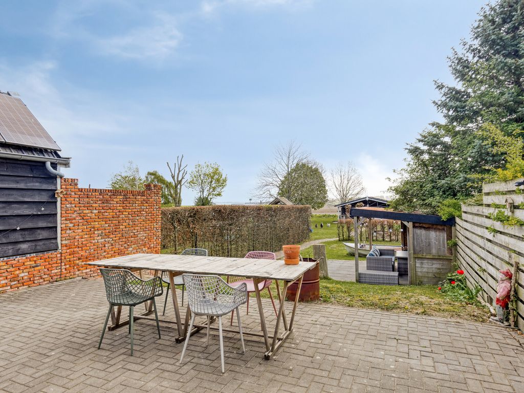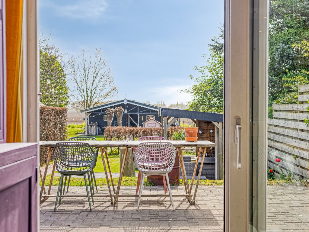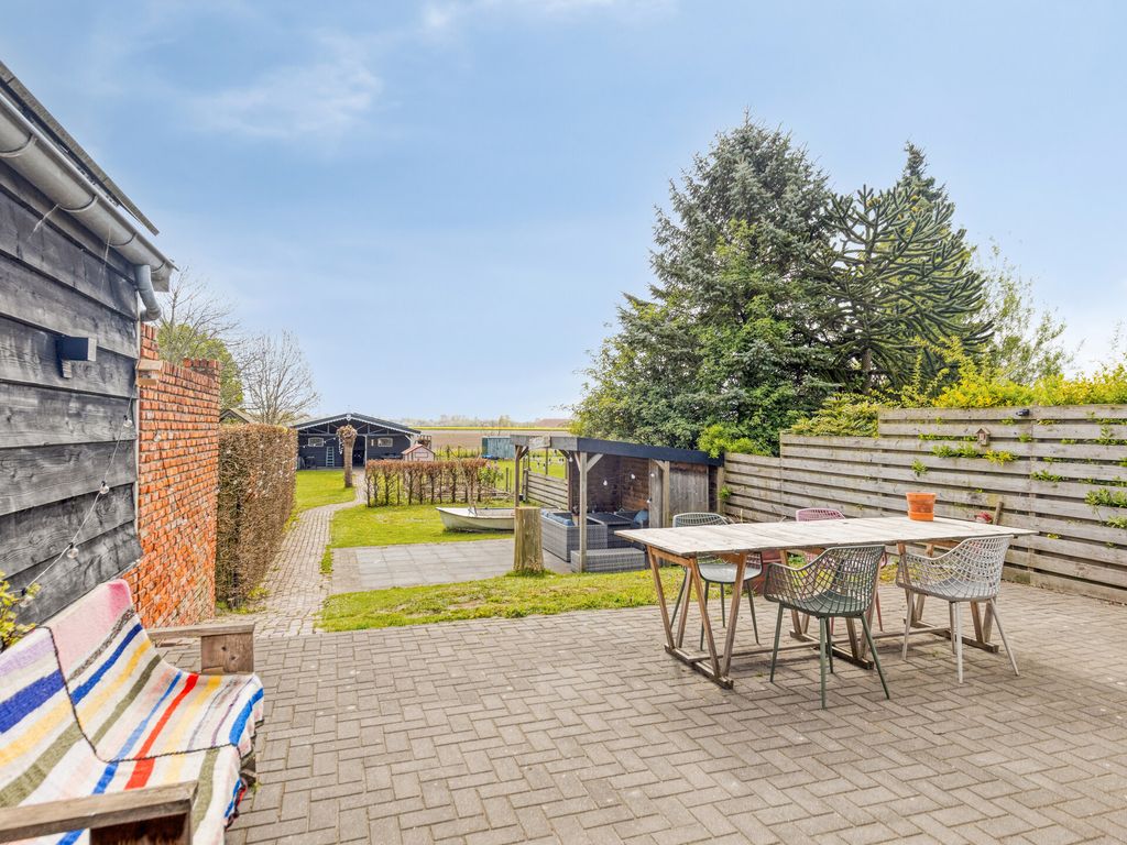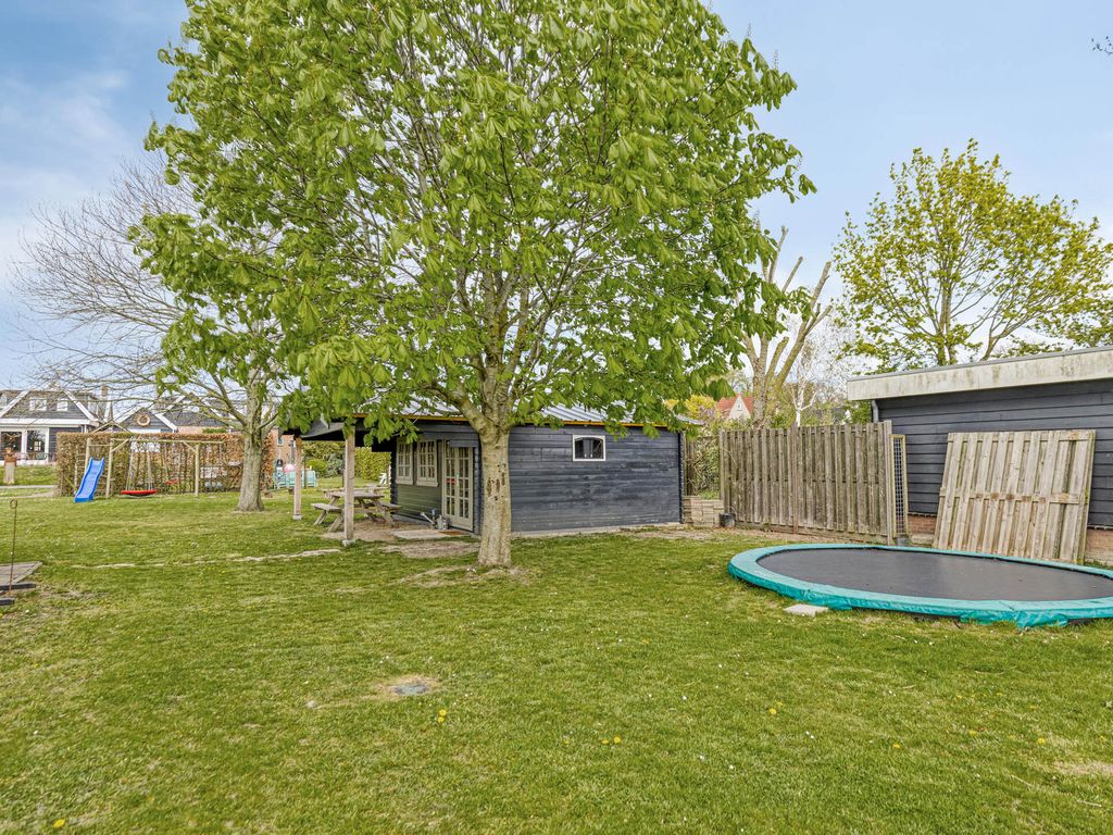 De diepe achtertuin biedt volop ruimte en mogelijkheden. Direct achter de woning ligt een ruim terras, waarna de tuin speels naar beneden afloopt. In het midden bevindt zich een veranda, ideaal om beschut buiten te zitten.