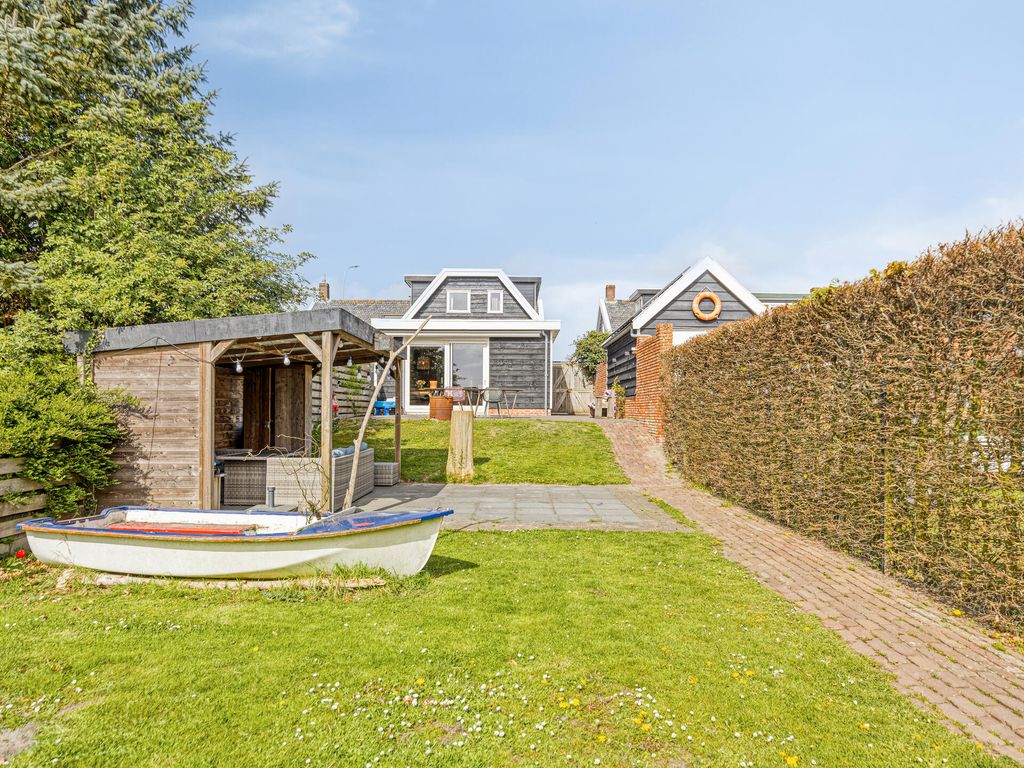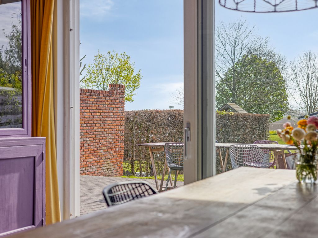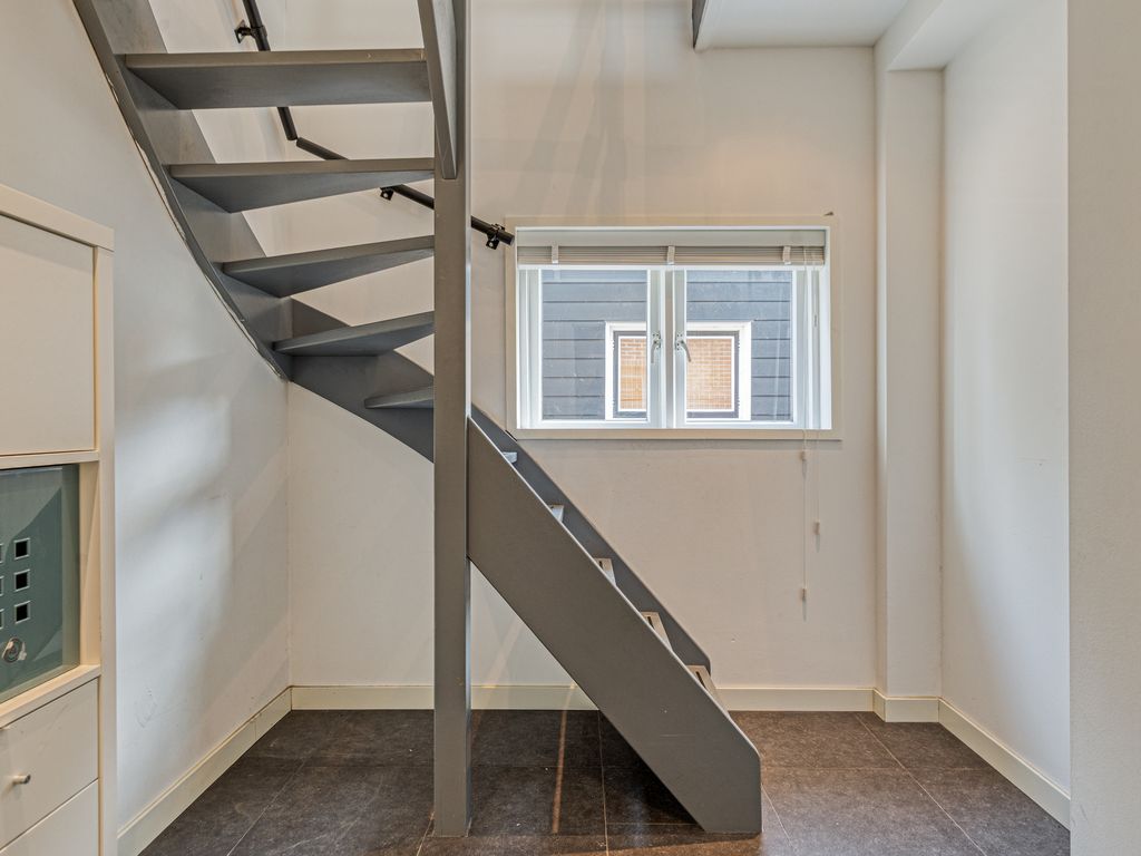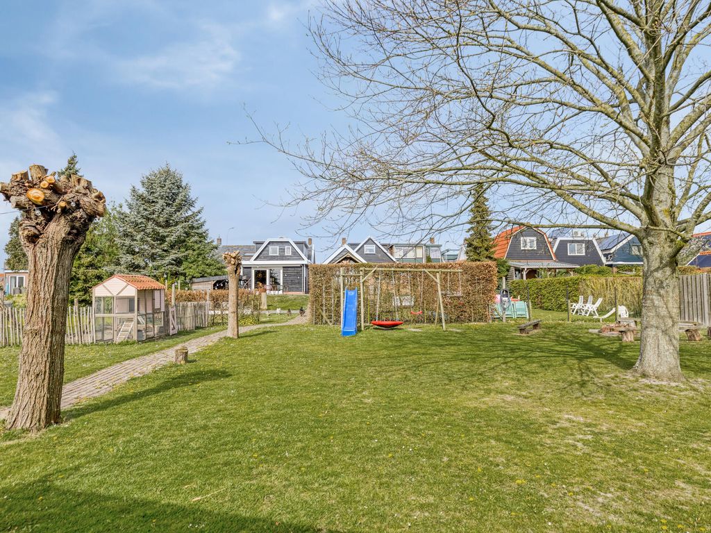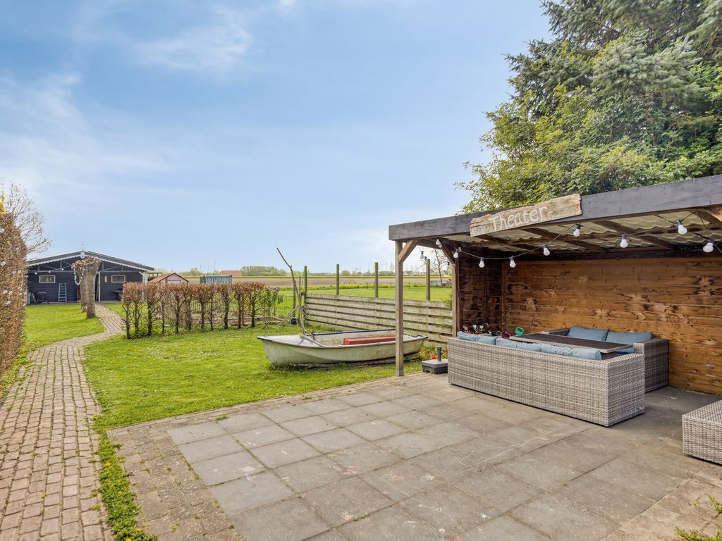 De diepe achtertuin biedt volop ruimte en mogelijkheden. Direct achter de woning ligt een ruim terras, waarna de tuin speels naar beneden afloopt. In het midden bevindt zich een veranda, ideaal om beschut buiten te zitten.