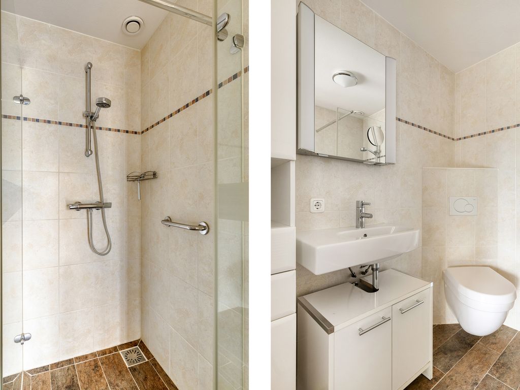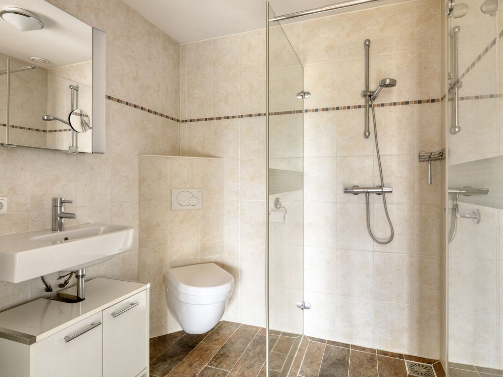 De slaapkamer van ca. 20 m² is eveneens verrassend ruim en biedt volop plaats voor een groot bed en kasten. Direct grenzend aan de slaapkamer treft u de nette badkamer. Deze is praktisch ingericht en beschikt over een 2e toilet, wastafel met meubel en een douche.